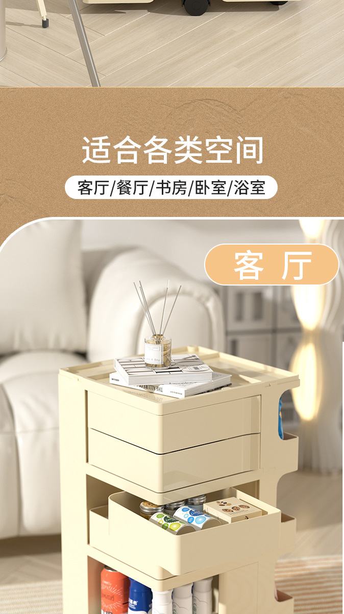 저장 캐비닛 거실 침실 다기능 회전식 크림 스타일 침대 옆 캐비닛 트롤리 스낵 화장품 보관 랙