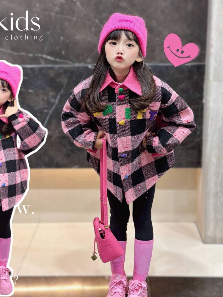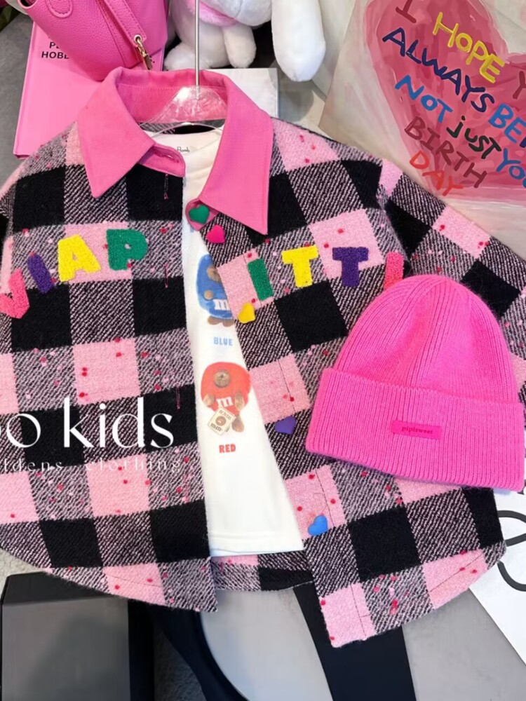 여아 코트 아동복 2025년 초봄 스타일 아동 패션 캐주얼 체크 누빔 재킷 셔츠 트렌디스토어 가기