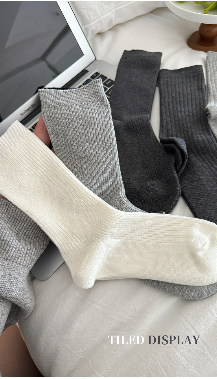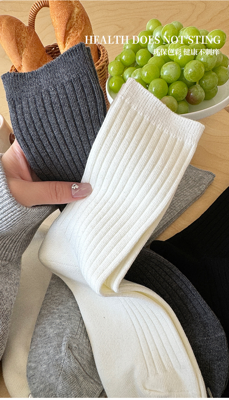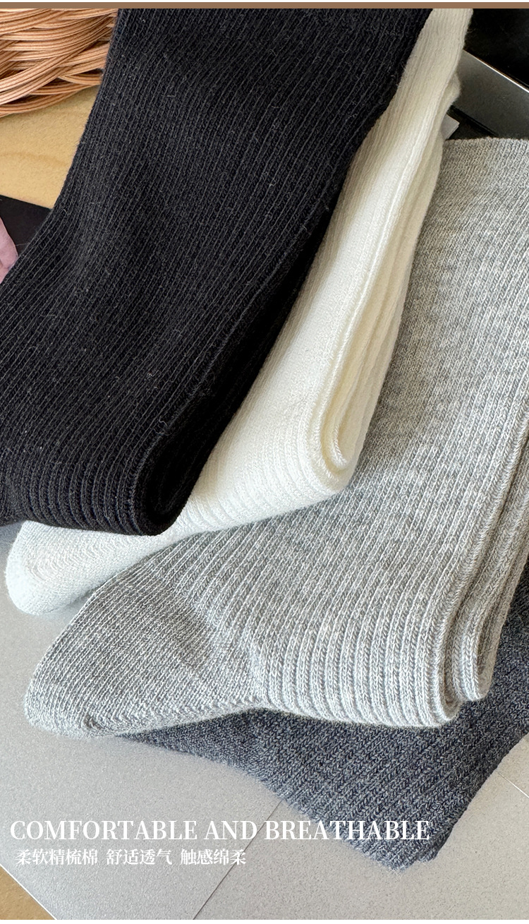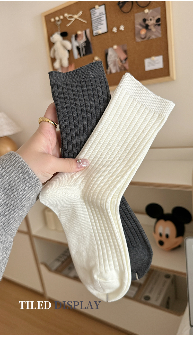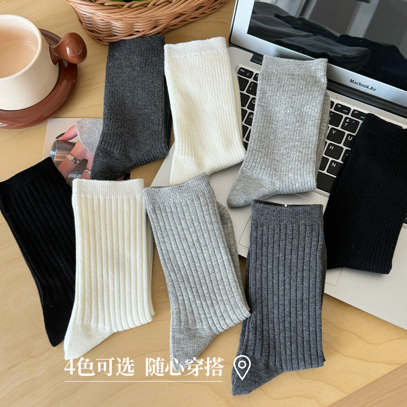 단색 양말 어린이 중간 길이 양말 가을 겨울 면 양말 유행 인터넷 인기 한국식 스타킹 커플 회색 쌓인 양말스토어 가기