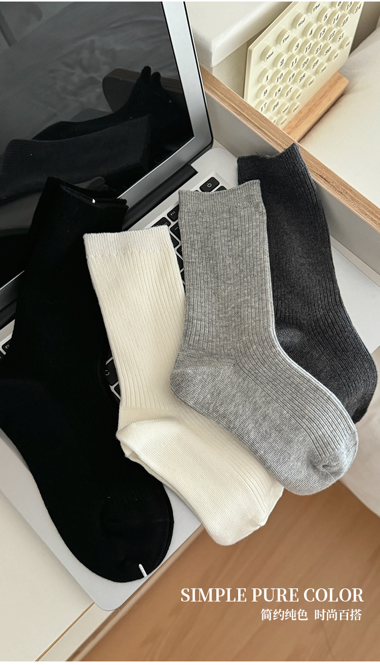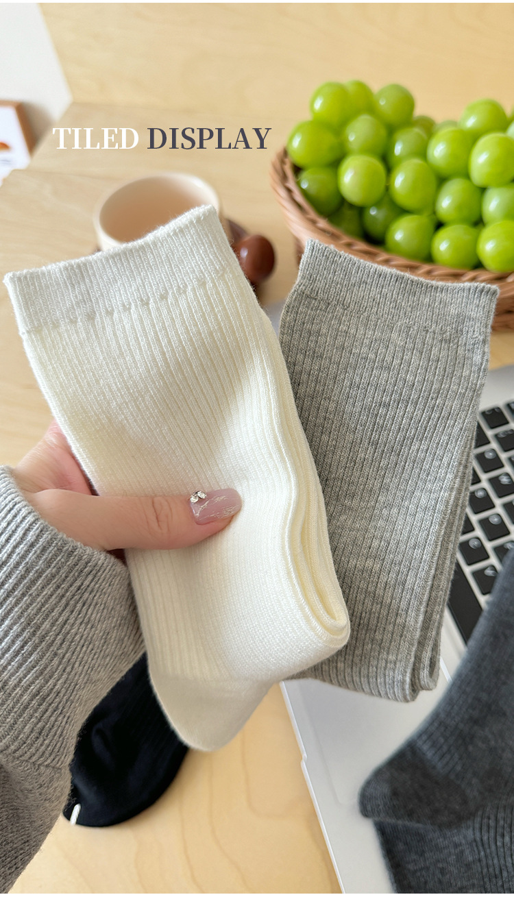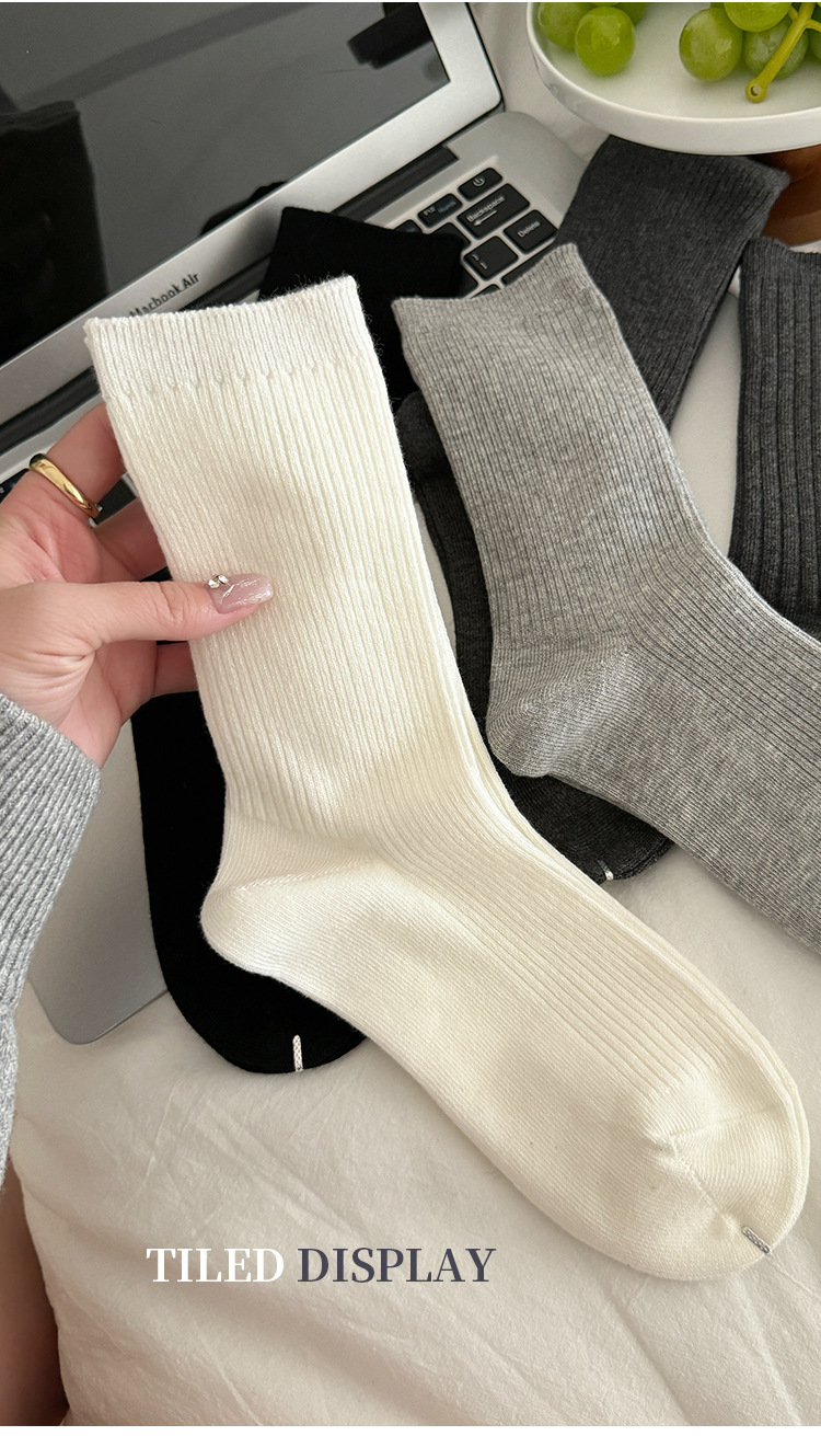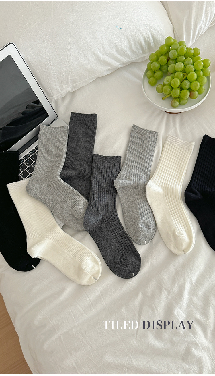 단색 양말 어린이 중간 길이 양말 가을 겨울 면 양말 유행 인터넷 인기 한국식 스타킹 커플 회색 쌓인 양말스토어 가기