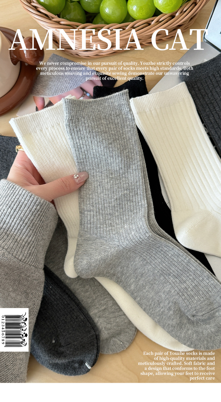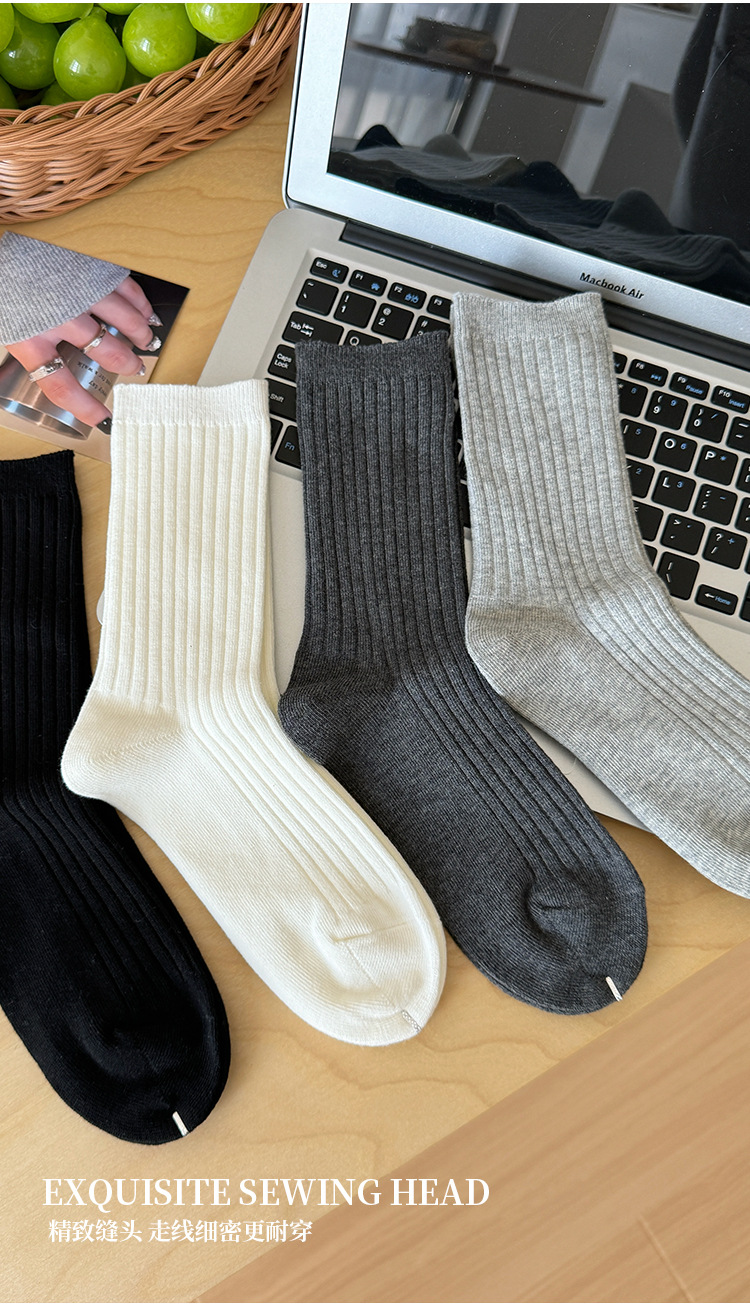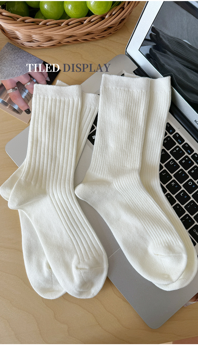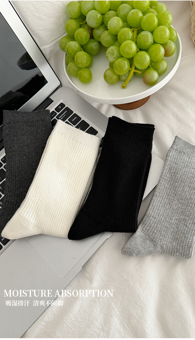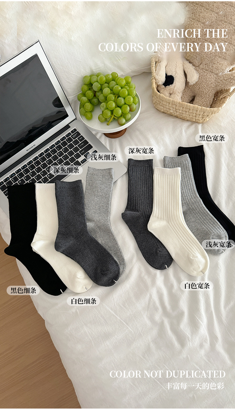 단색 양말 어린이 중간 길이 양말 가을 겨울 면 양말 유행 인터넷 인기 한국식 스타킹 커플 회색 쌓인 양말스토어 가기