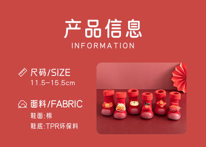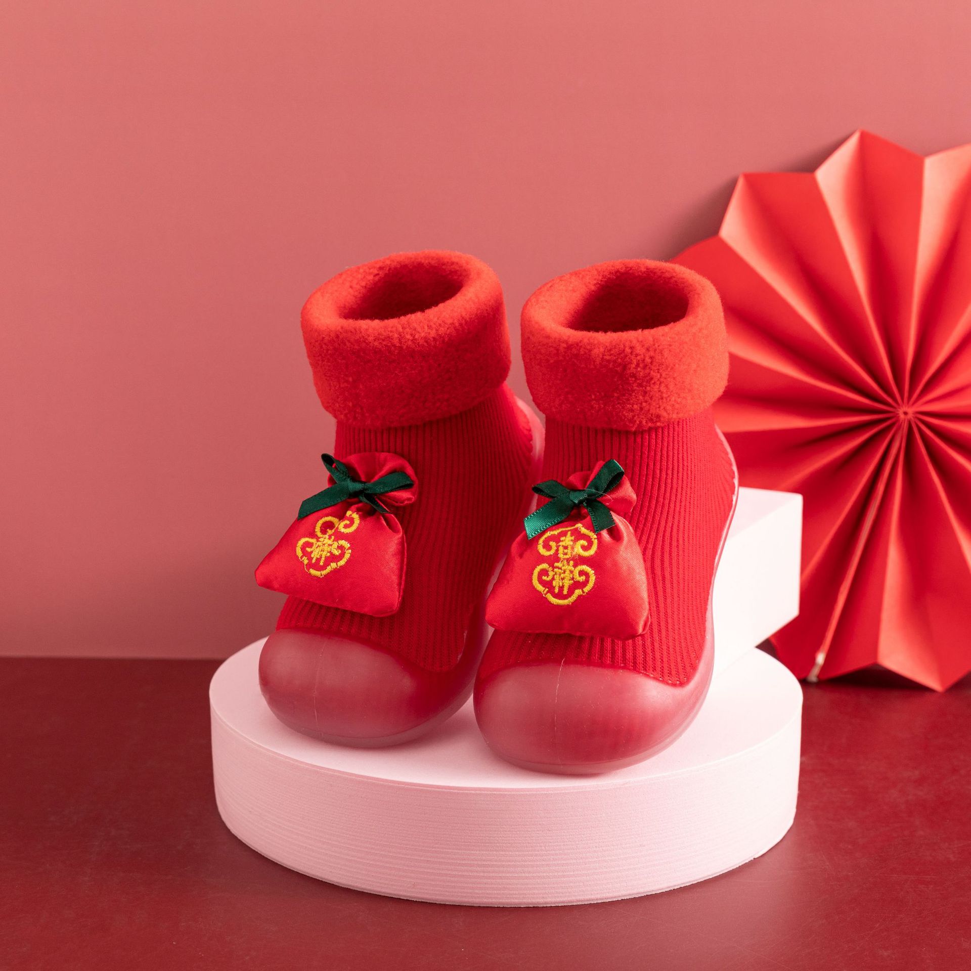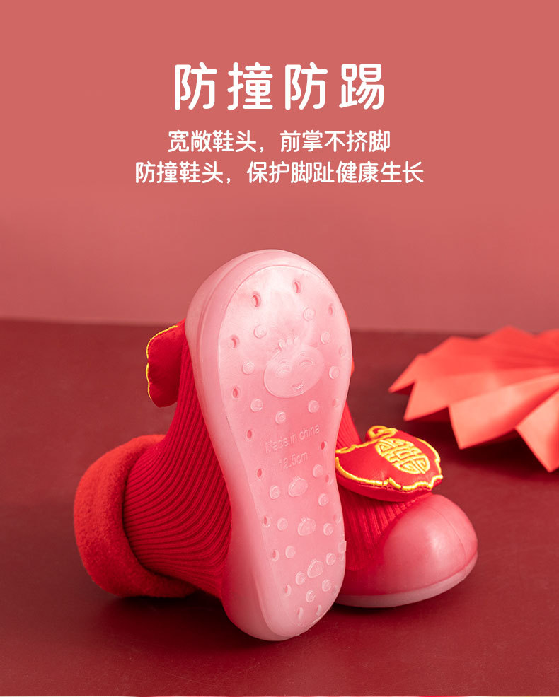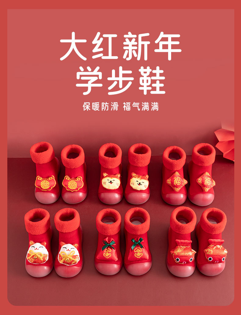 새해 빨간 캐시미어 아기 바닥 양말 두꺼운 따뜻한 실내 유아 신발 TPR 미끄럼 방지 어린이 바닥 신발스토어 가기