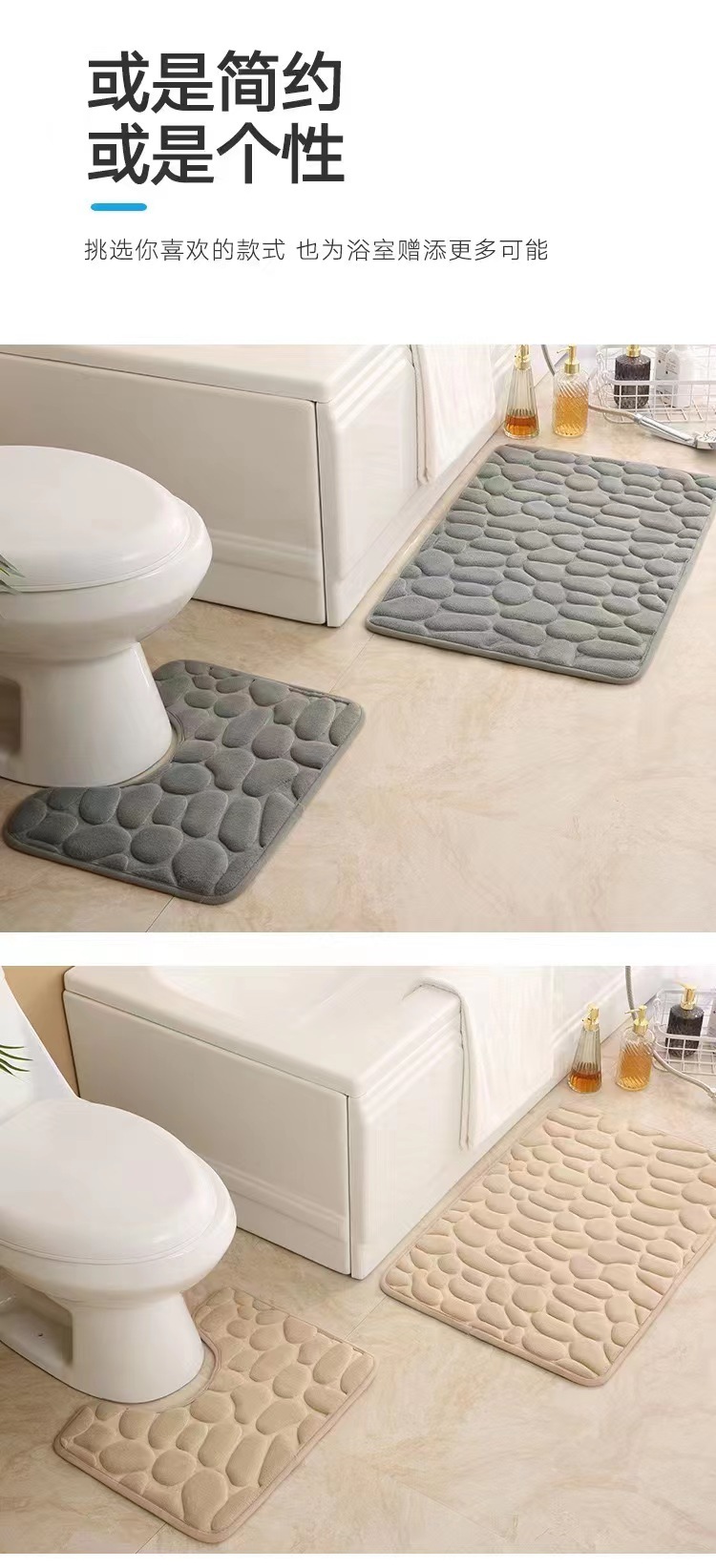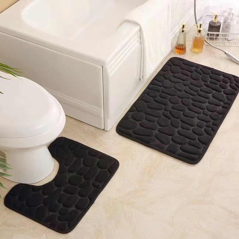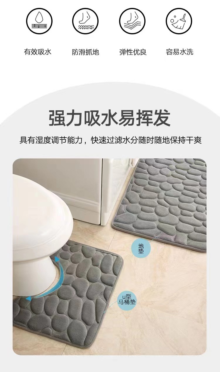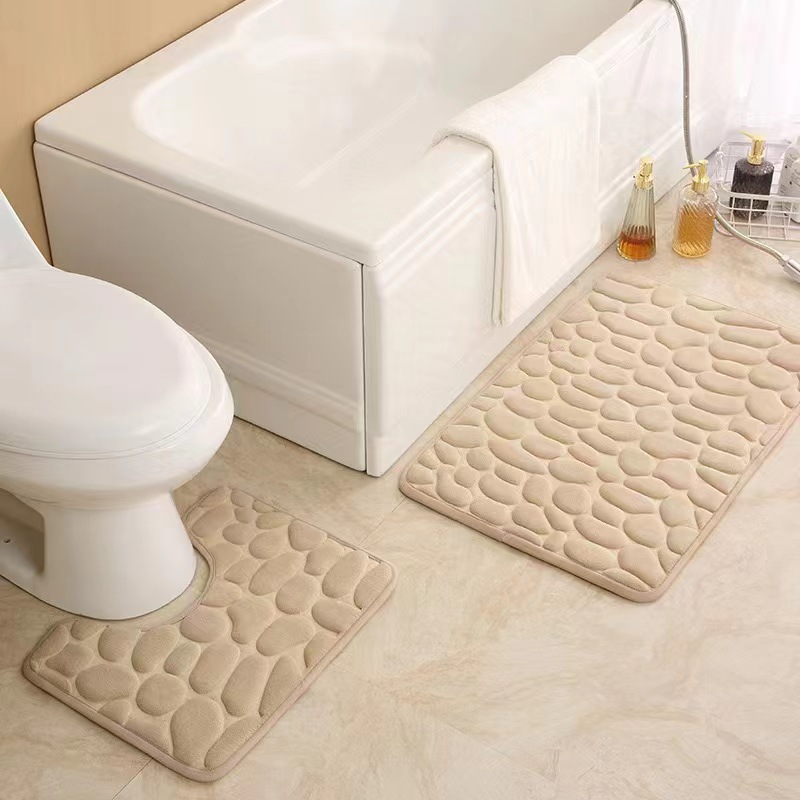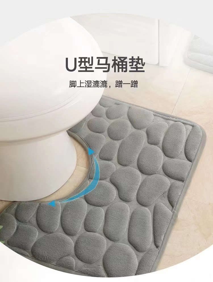 크로스 보더 조약돌 엠보싱 흡수 바닥 매트 U 자형 화장실 3 피스 욕실 바닥 매트 산호 양털 바닥 매트스토어 가기