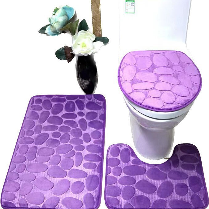 크로스 보더 조약돌 엠보싱 흡수 바닥 매트 U 자형 화장실 3 피스 욕실 바닥 매트 산호 양털 바닥 매트