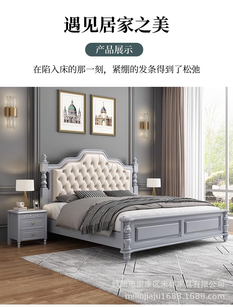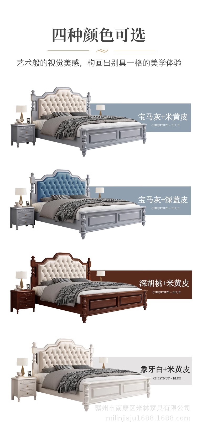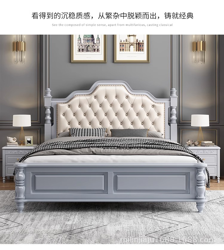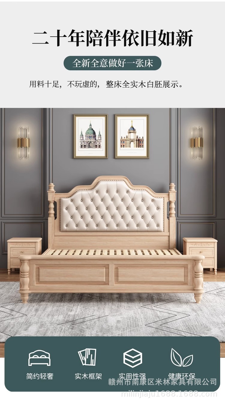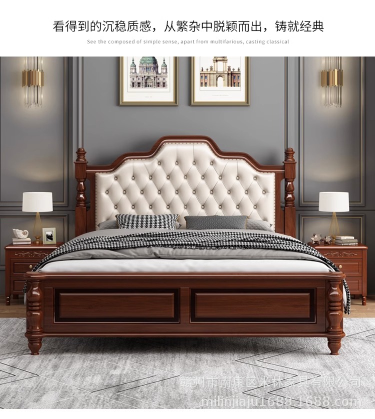 미국 복고풍 전체 단단한 나무 침대 라이트 럭셔리 더블 침대 1.8m 마스터 침실 웨딩 침대 1.5 심플 모던 소프트 가죽 침대스토어 가기