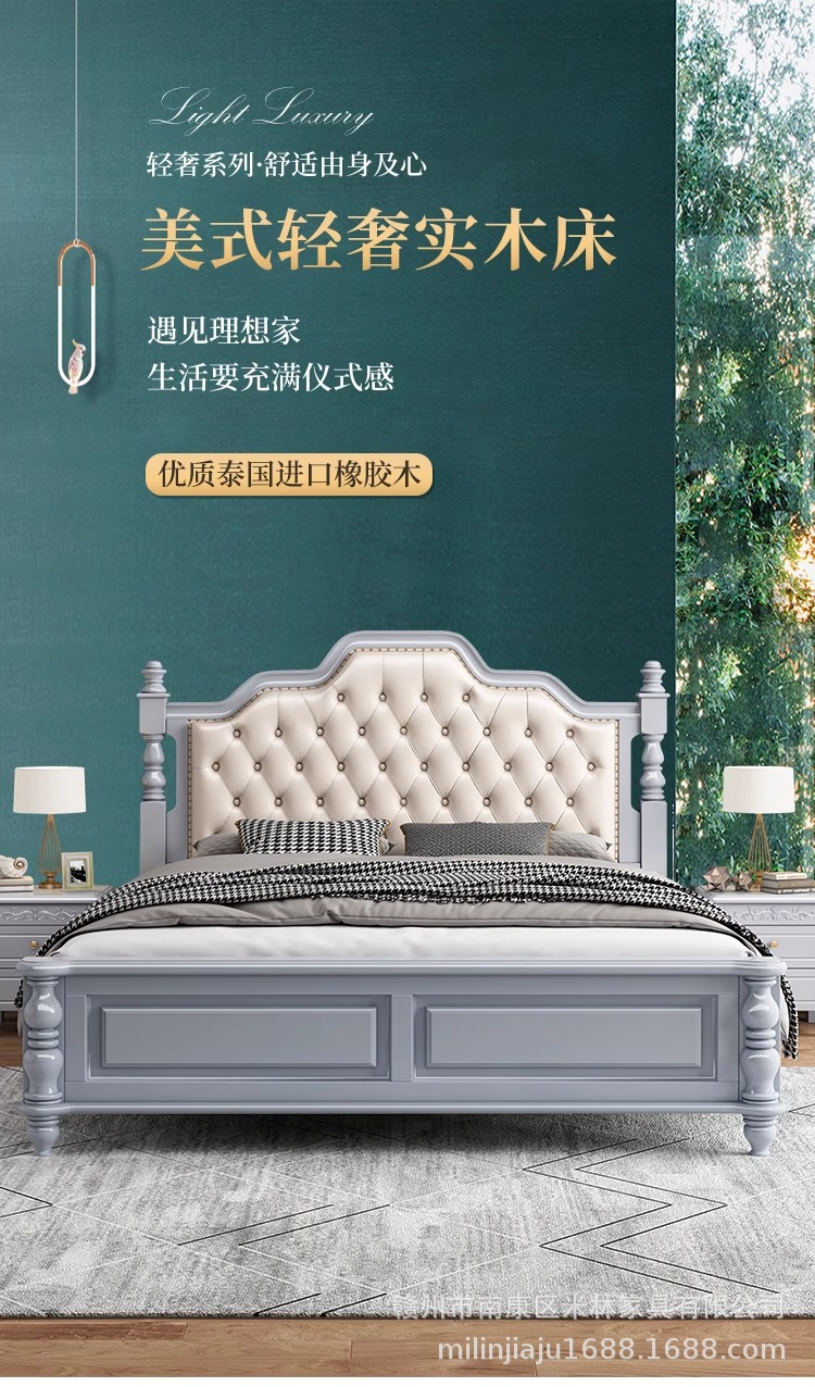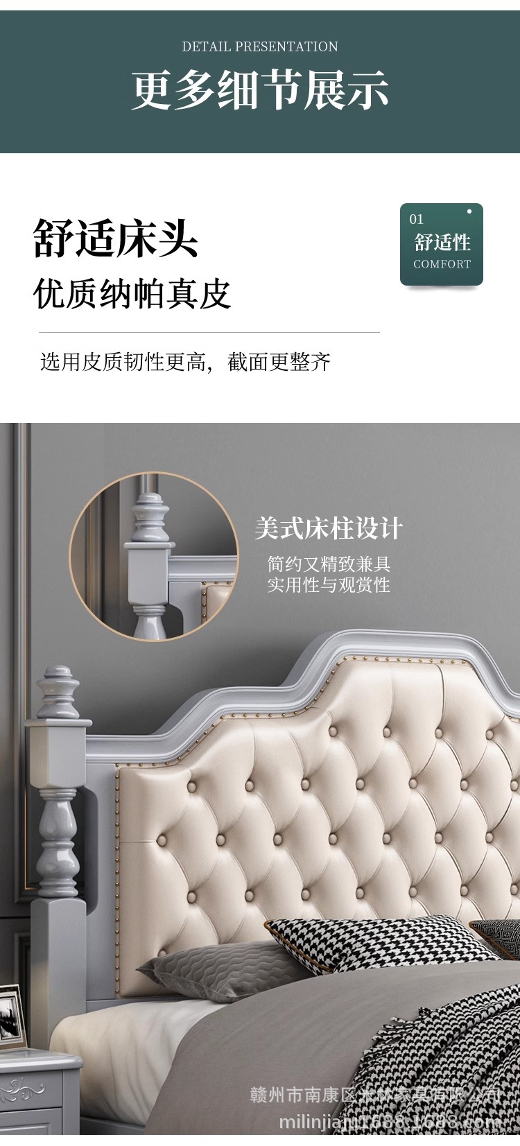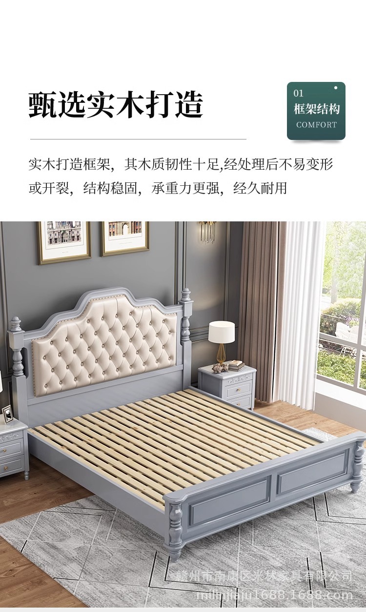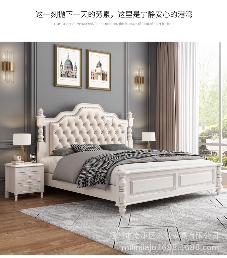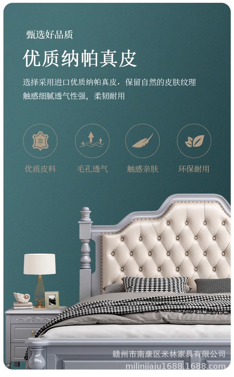 미국 복고풍 전체 단단한 나무 침대 라이트 럭셔리 더블 침대 1.8m 마스터 침실 웨딩 침대 1.5 심플 모던 소프트 가죽 침대스토어 가기