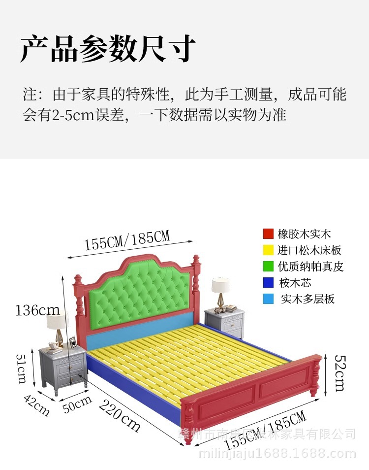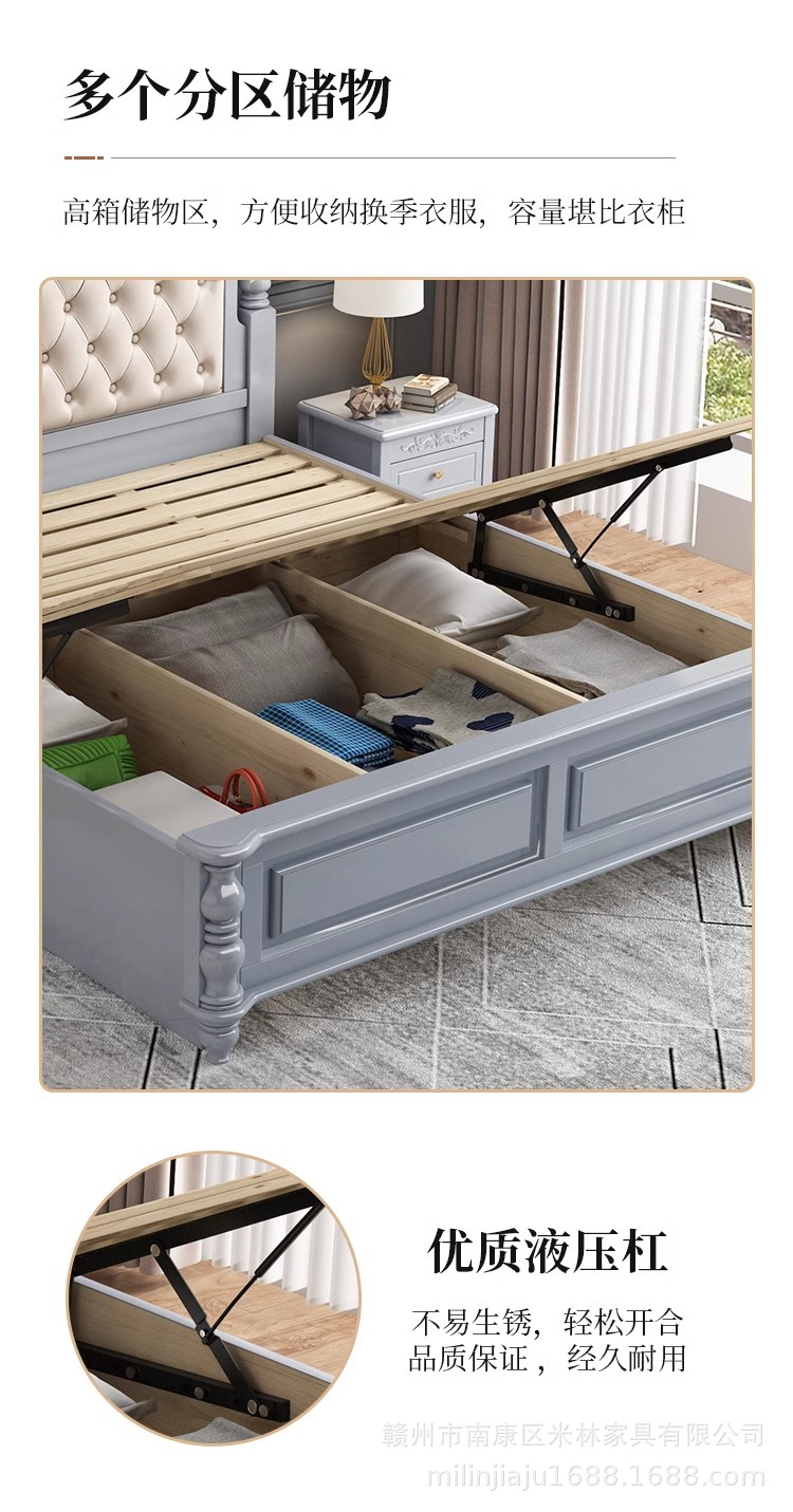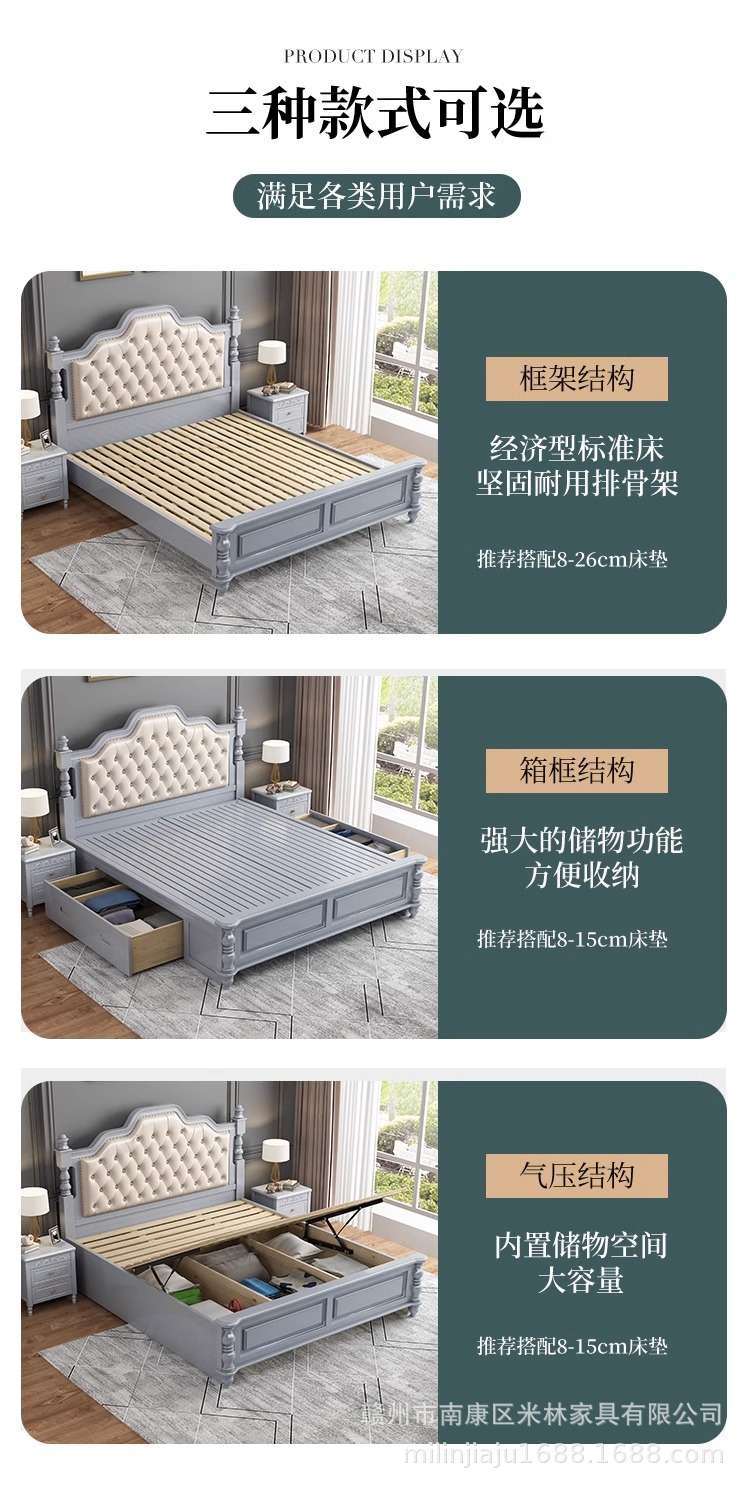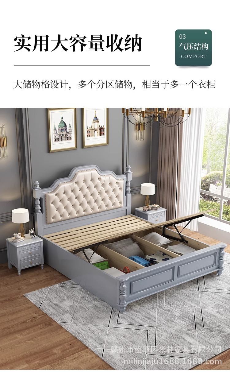 미국 복고풍 전체 단단한 나무 침대 라이트 럭셔리 더블 침대 1.8m 마스터 침실 웨딩 침대 1.5 심플 모던 소프트 가죽 침대스토어 가기