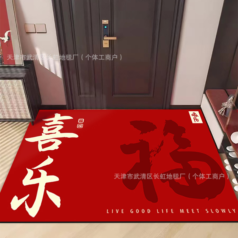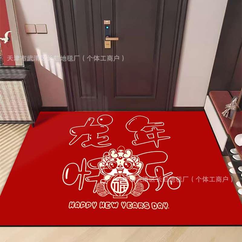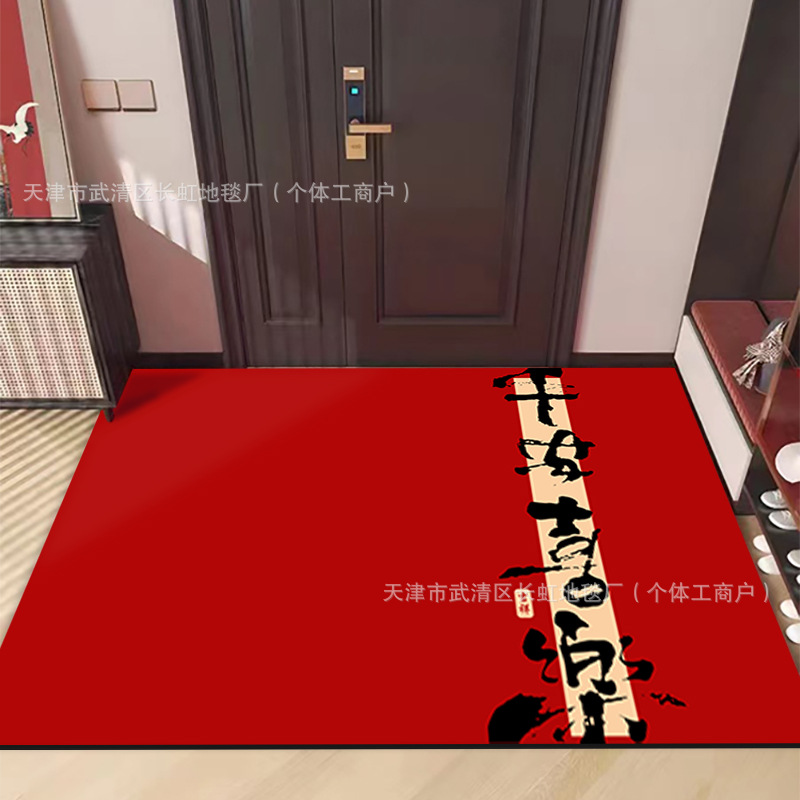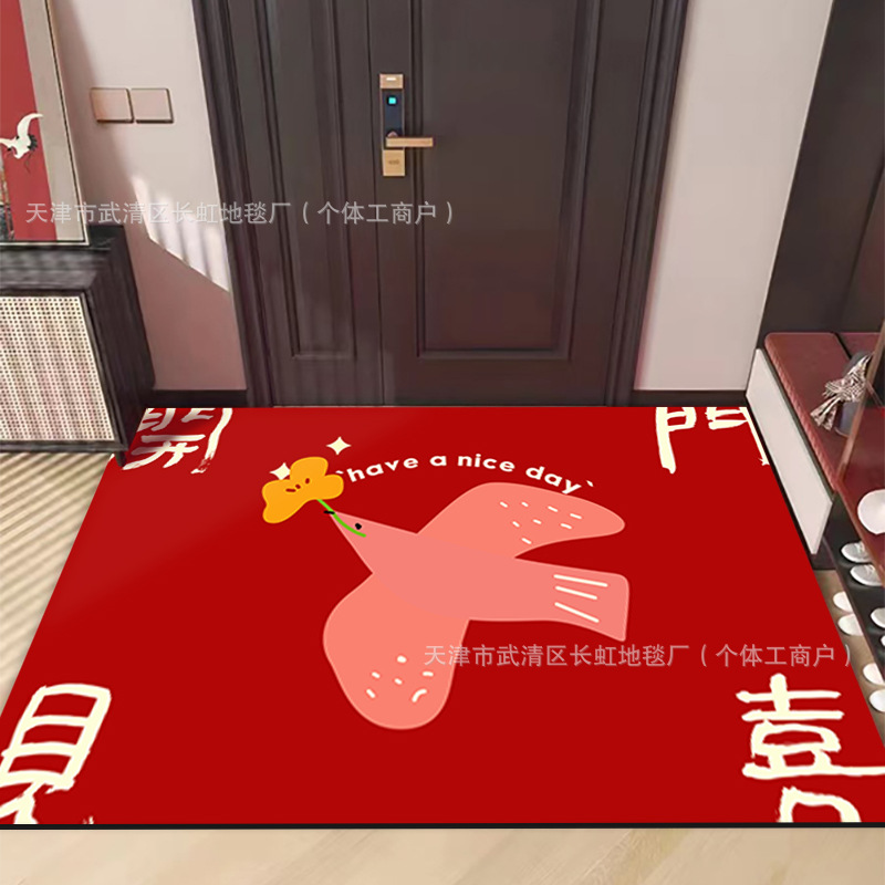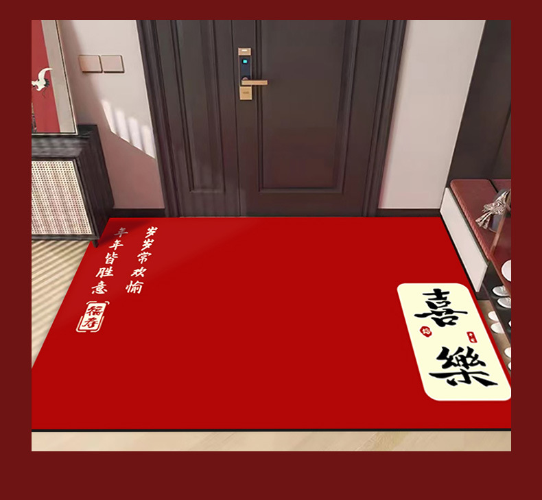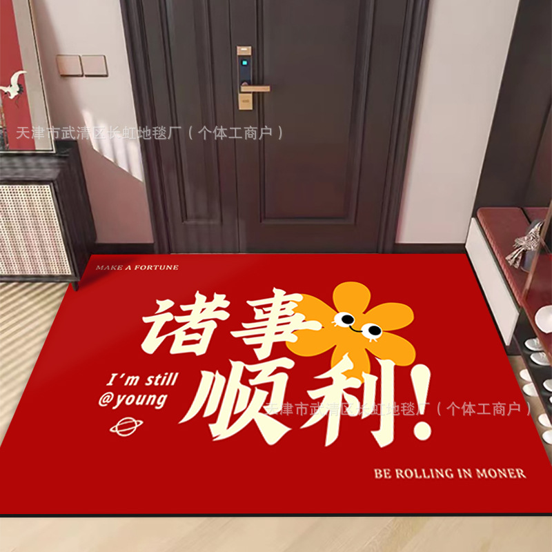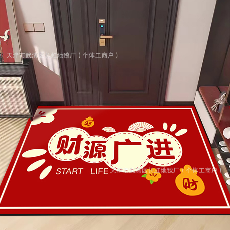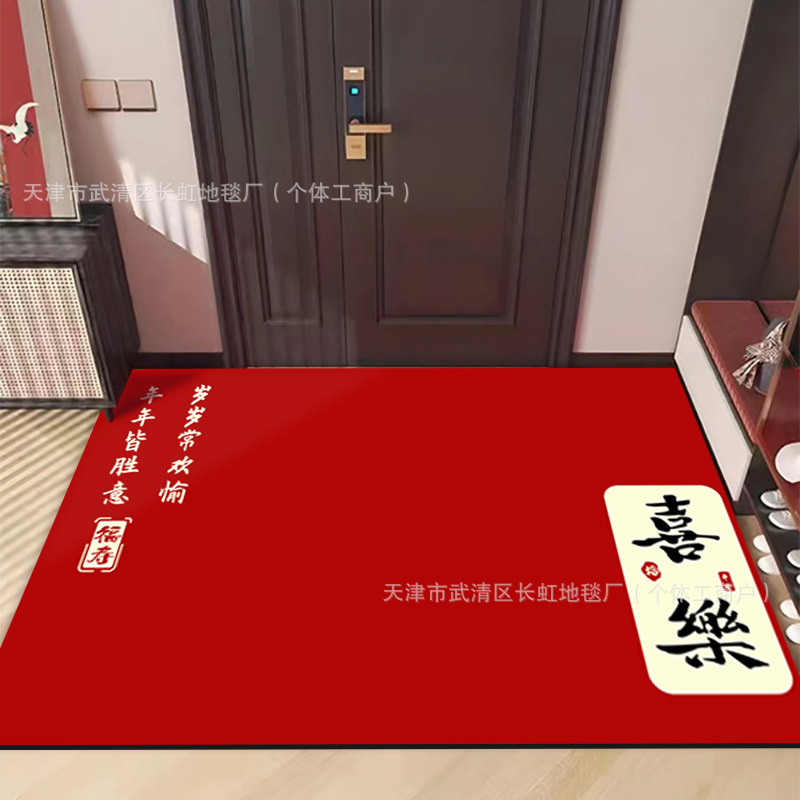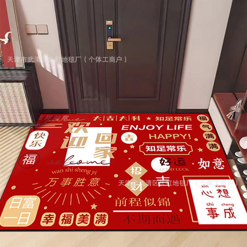 새해 포춘 크리스탈 벨벳 바닥 매트 입구 미끄럼 방지 토양 매트 레드 축제 입구 매트 절단 가능한 발 매트