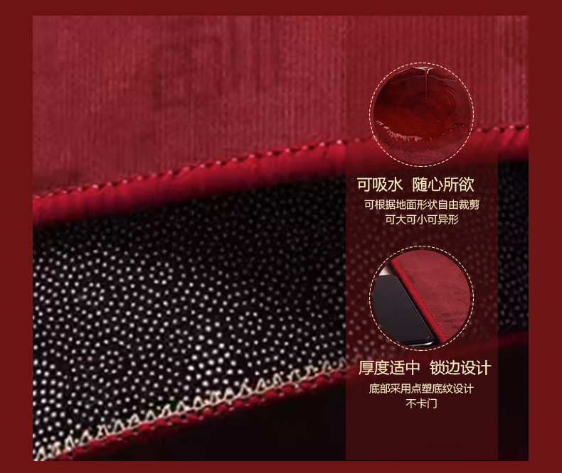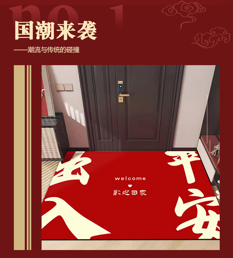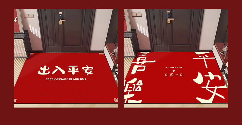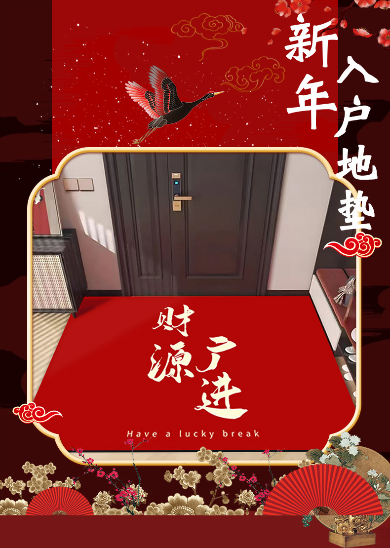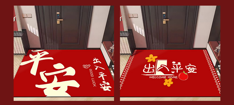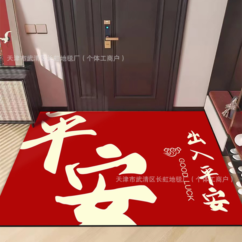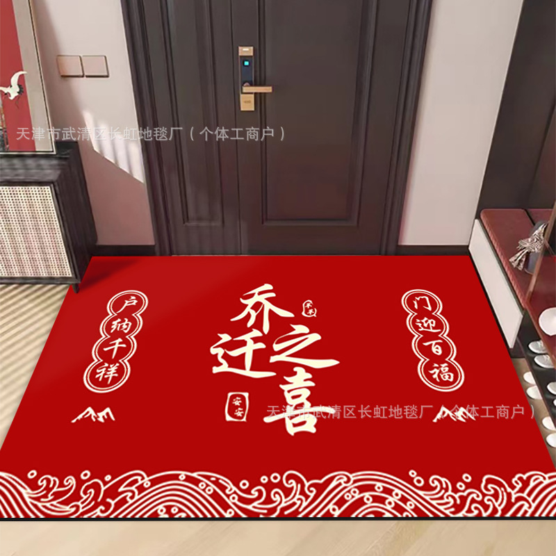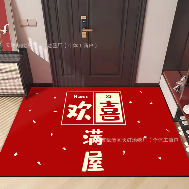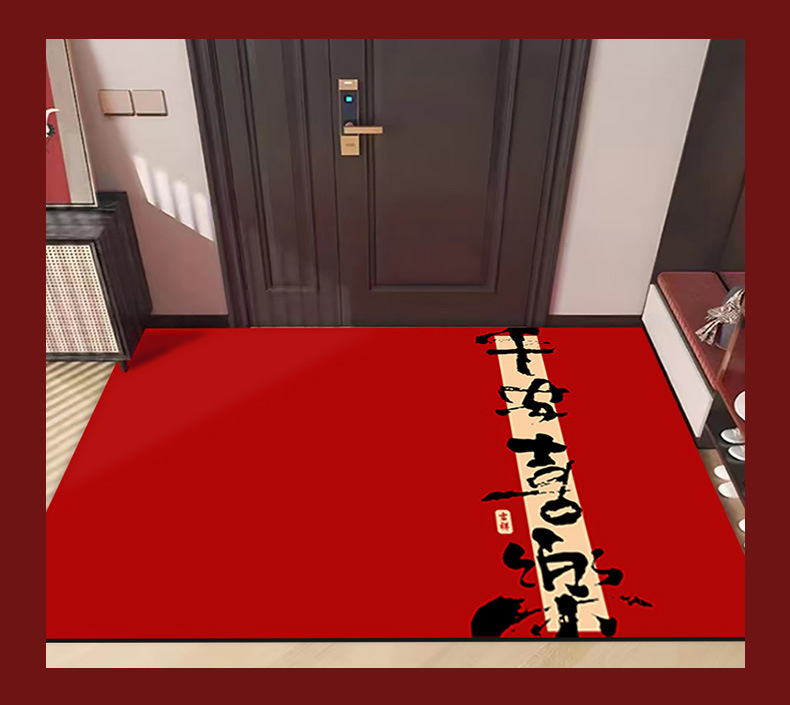 새해 포춘 크리스탈 벨벳 바닥 매트 입구 미끄럼 방지 토양 매트 레드 축제 입구 매트 절단 가능한 발 매트