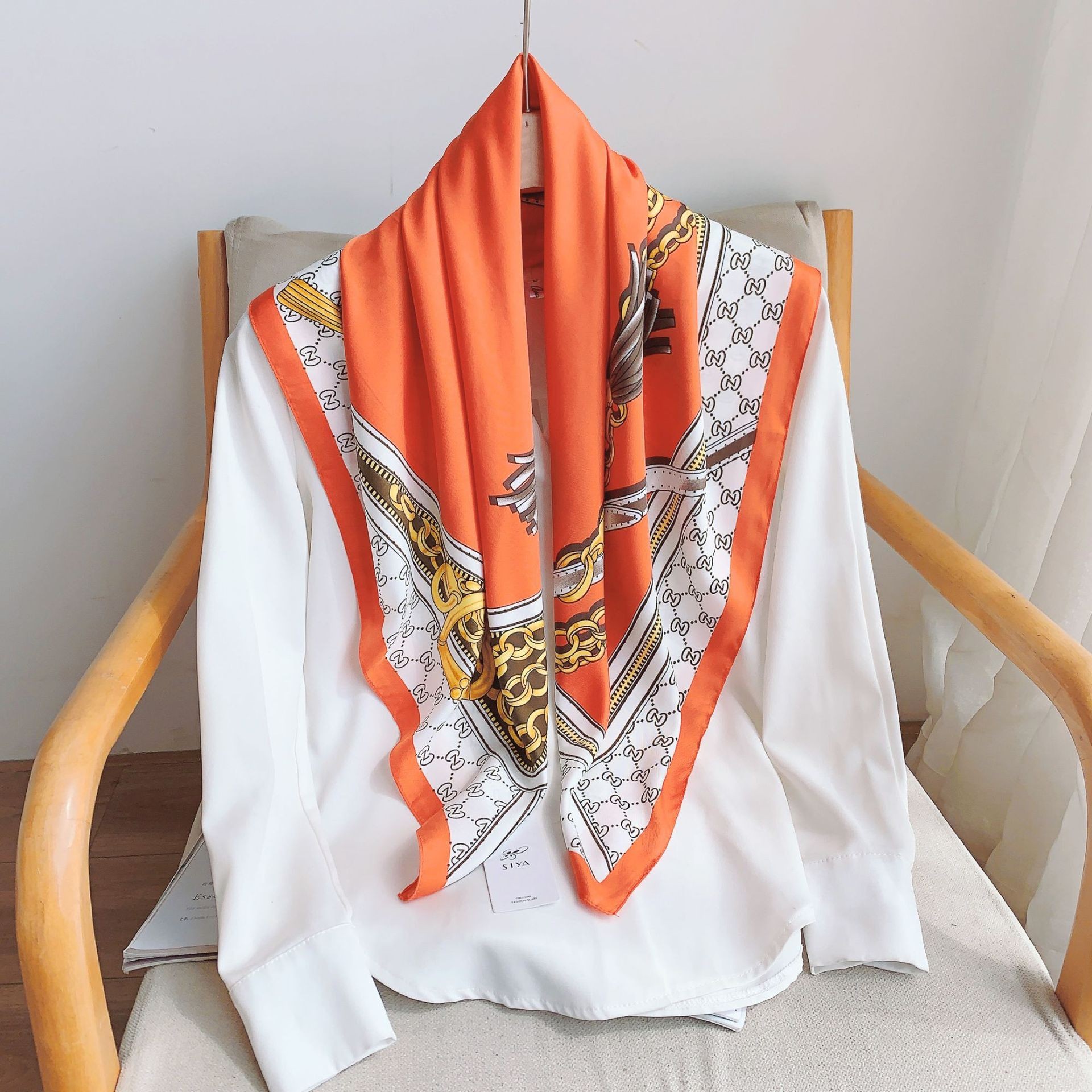 봄과 여름 2023 새로운 실크 같은 프린트 실크 스카프 트울 90 라지 스퀘어 스카프 여성용 한국식 패셔너블 숄 만능 스카프스토어 가기
