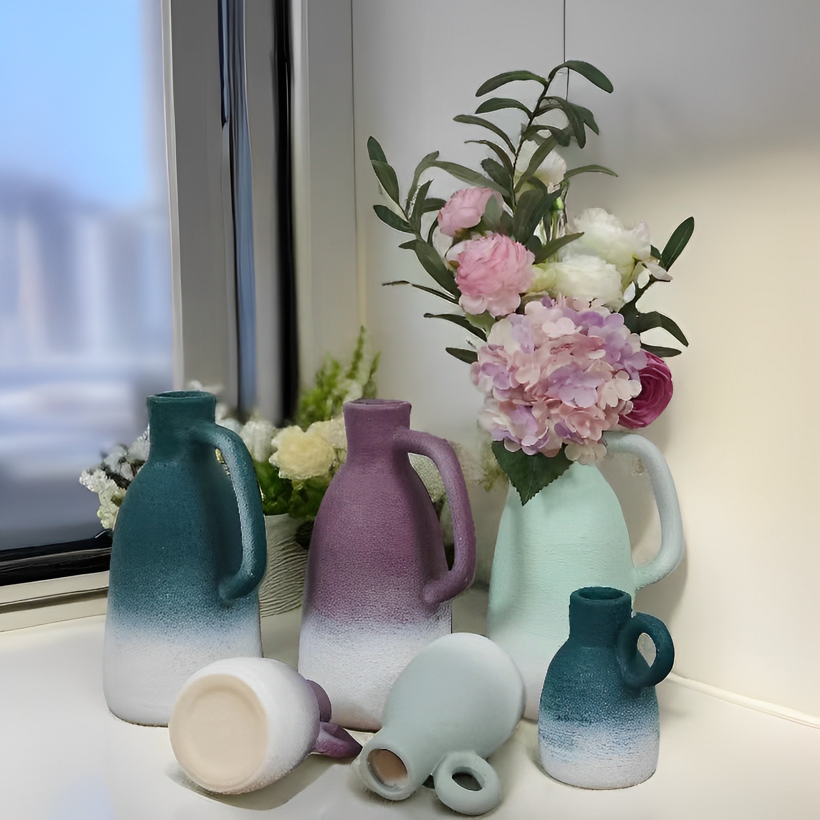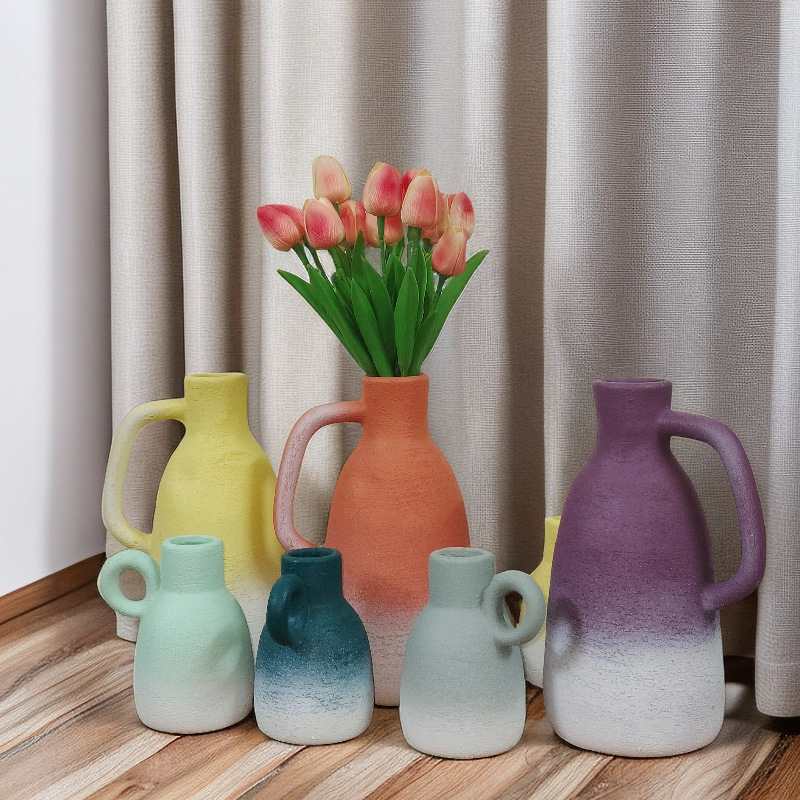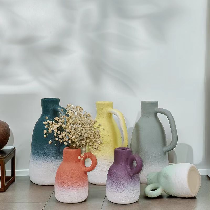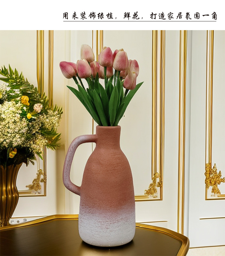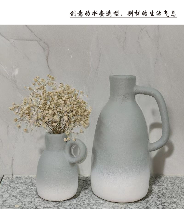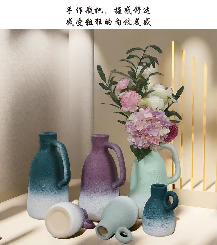 세라믹 꽃병 장식품 거실 주전자 장식 간단한 창조적 인 거친 표면 모래 말린 꽃 꽃 꽃 배열 공예스토어 가기