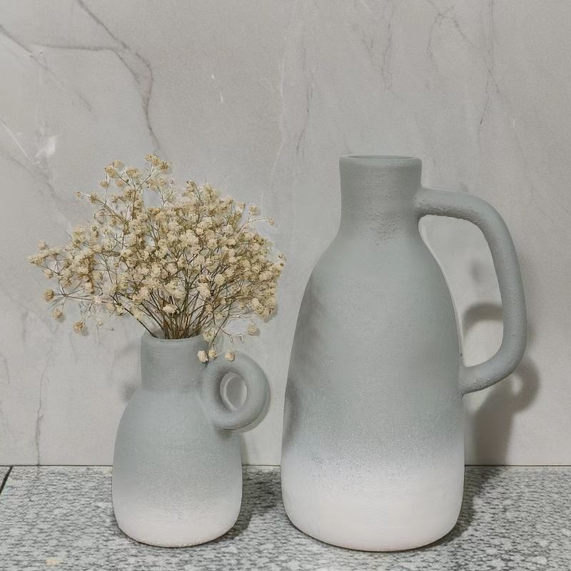 세라믹 꽃병 장식품 거실 주전자 장식 간단한 창조적 인 거친 표면 모래 말린 꽃 꽃 꽃 배열 공예