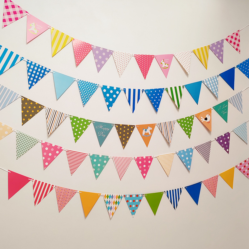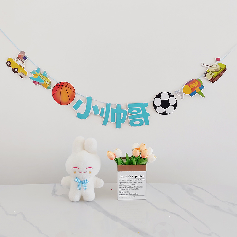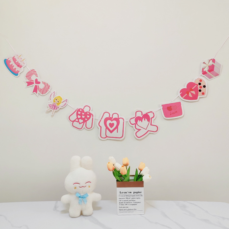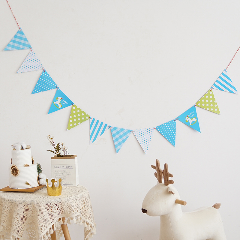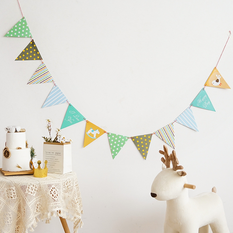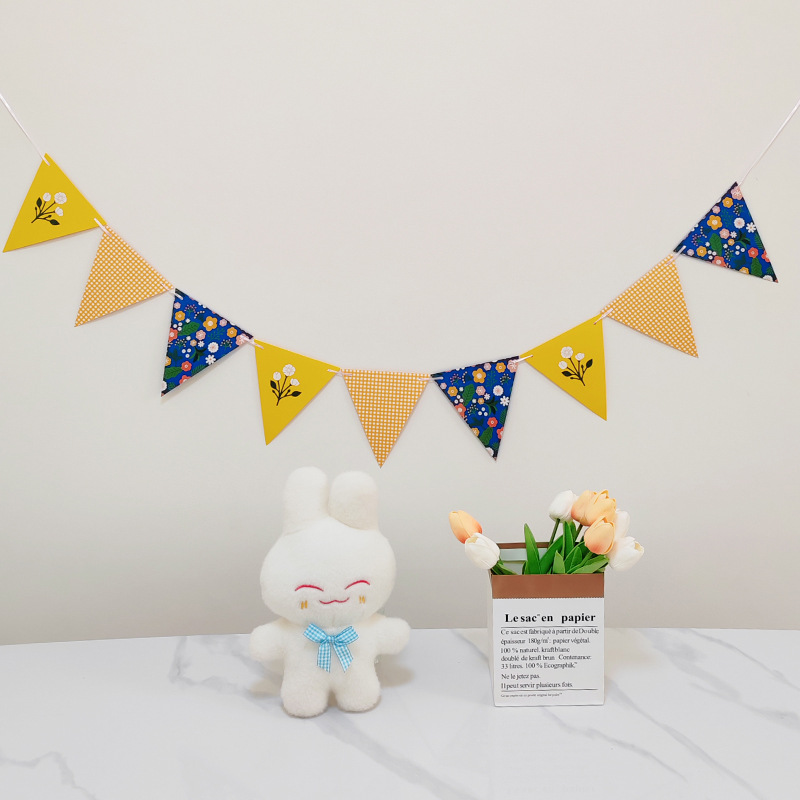 작은 신선한 삼각형 생일 파티 배너 꽃 깃발 장면 레이아웃 인쇄 깃발 요정 잘 생긴 소년스토어 가기