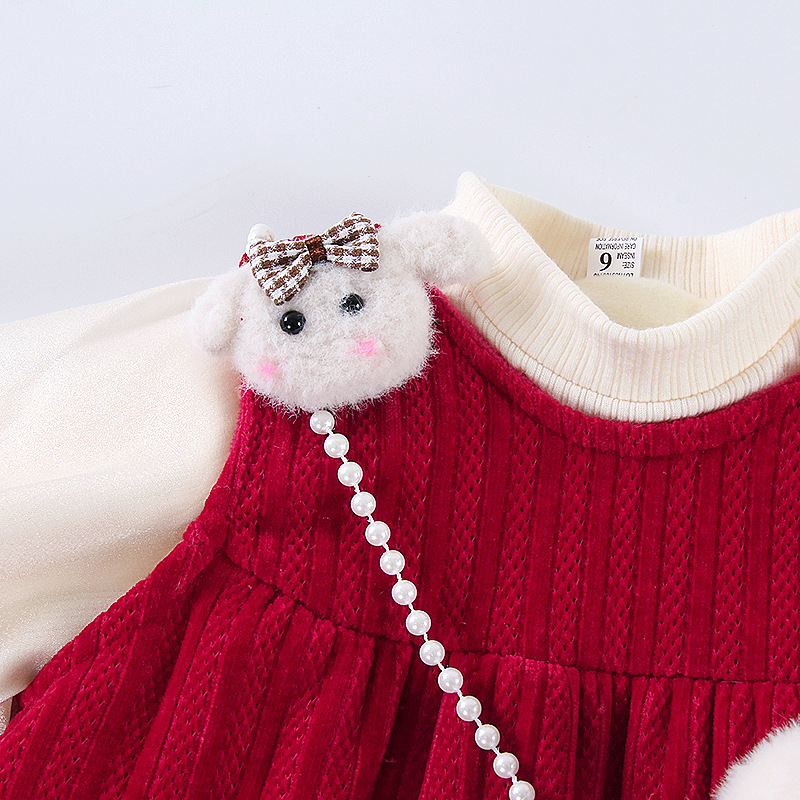 여아 원피스 가을과 겨울 어린이 세련된 공주 원피스 1 세 원피스 유행 아기 겨울 기모 2 종 세트스토어 가기