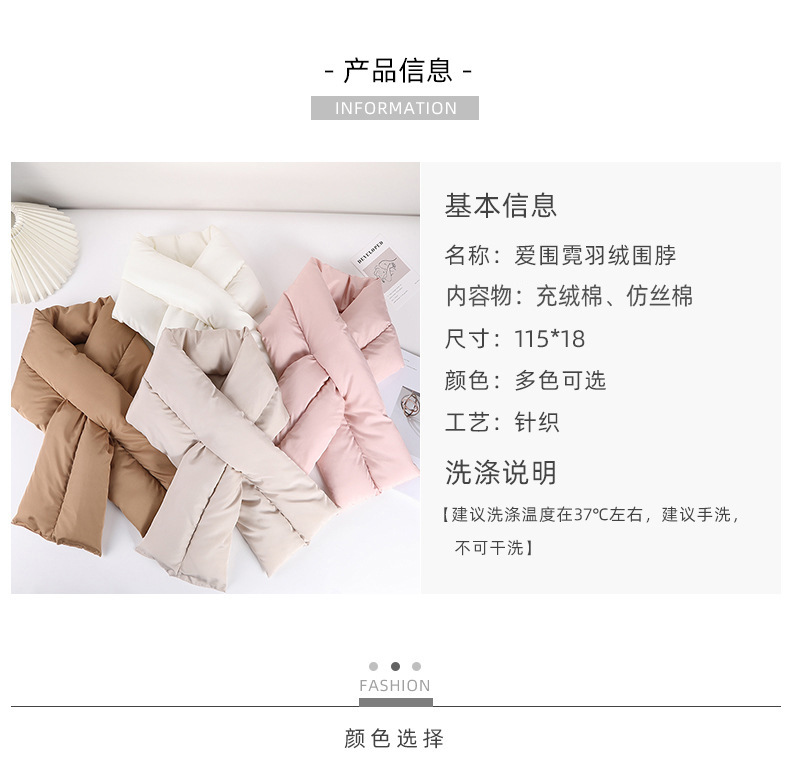 채워진 다운 스카프 가을과 겨울 새로운 십자가 채워진 다운 스카프 단색 따뜻한 스카프 방한 목 보호 스카프스토어 가기