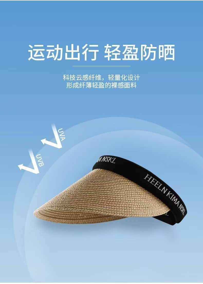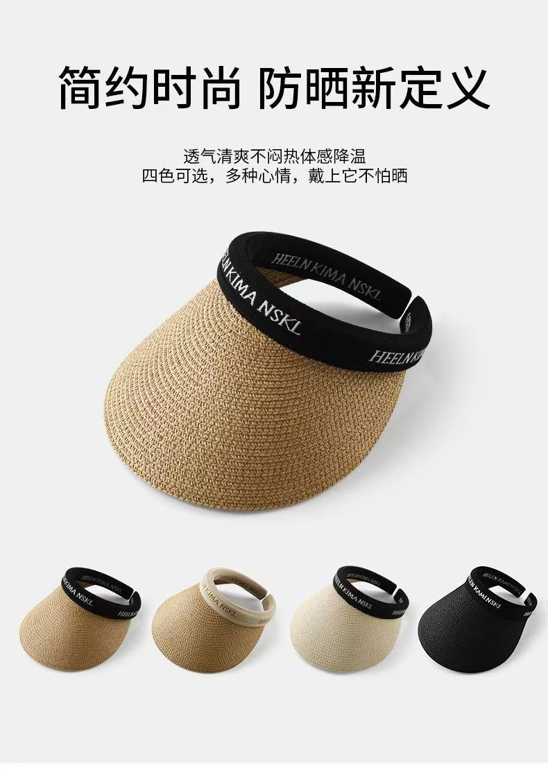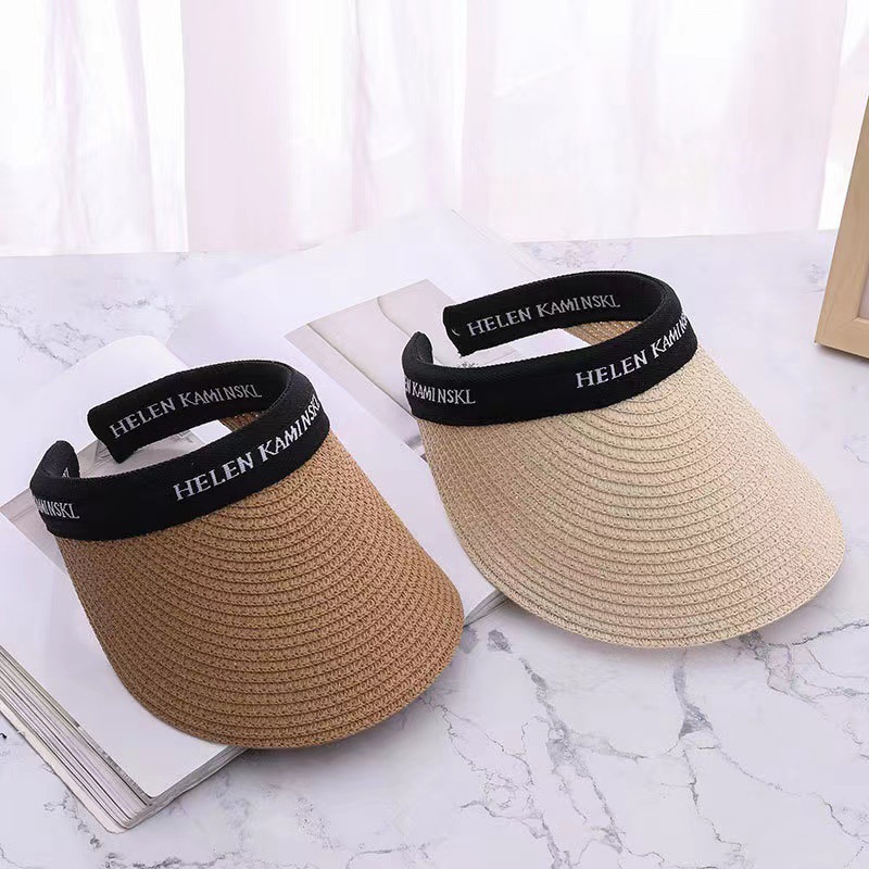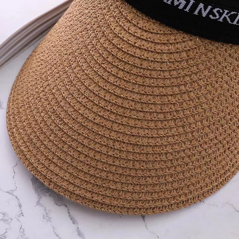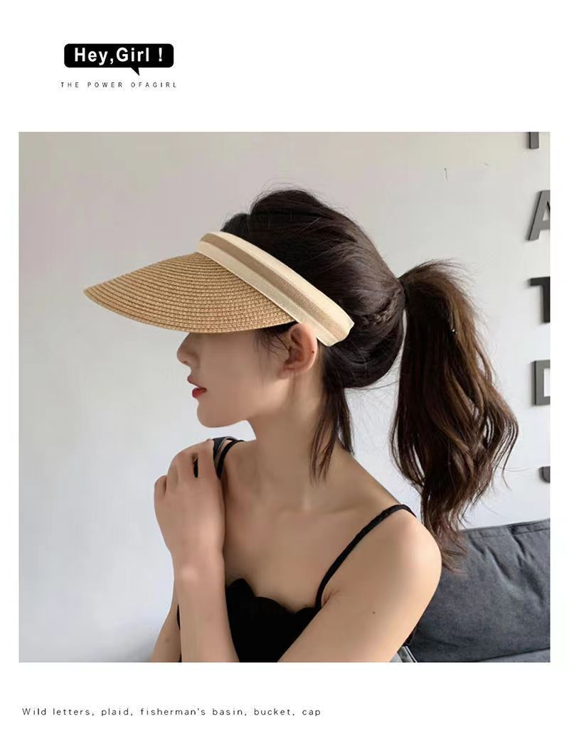 여름 밀짚 닦은 빈 탑 모자 자외선 차단제 인터넷 연예인 같은 스타일 얼굴을 덮는 머리띠 태양 모자 여행 및 승마 용 해변 태양 모자 여성용