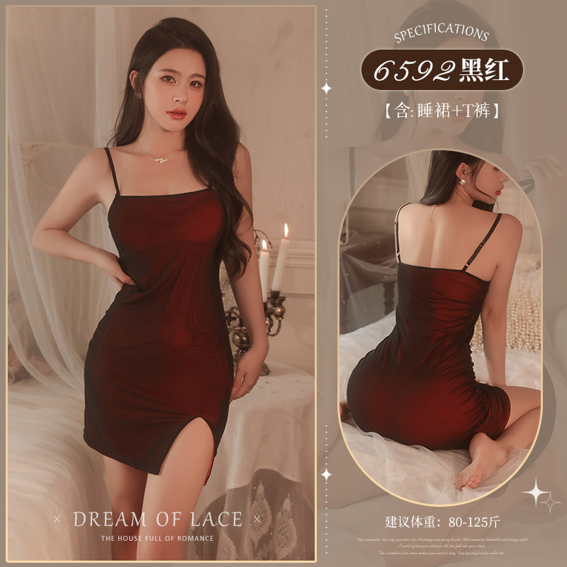 黑红【睡裙+T裤】+8282红边吊带袜(限价57.8)