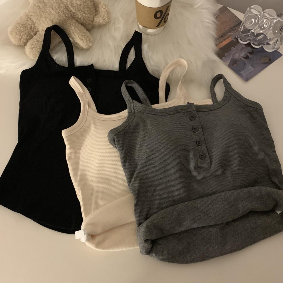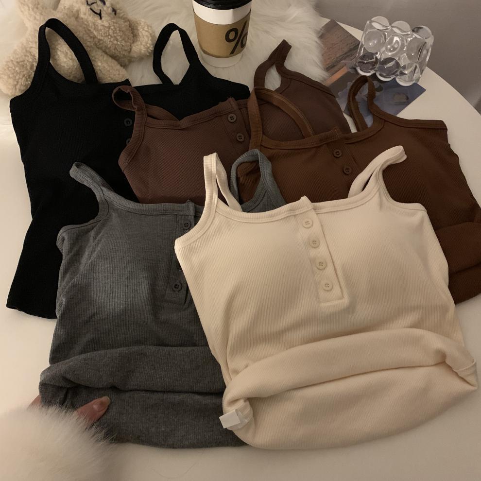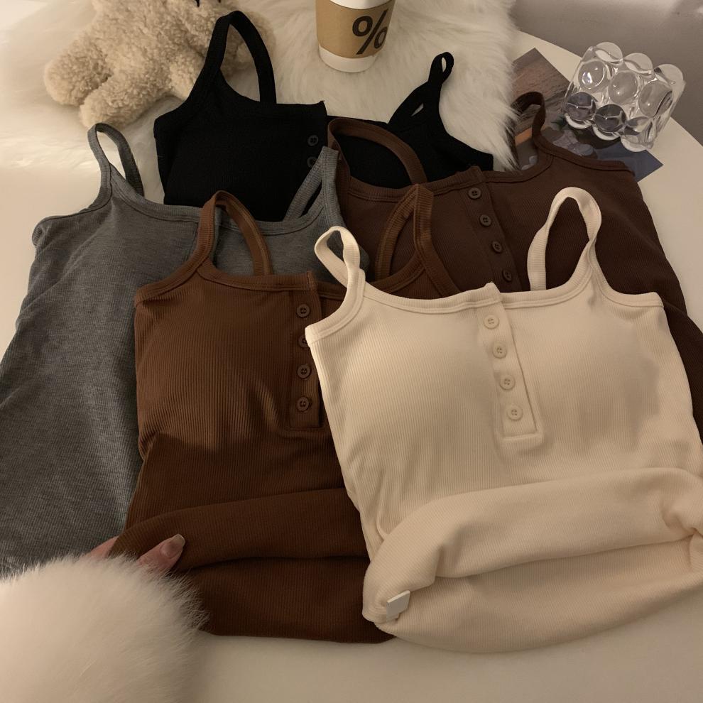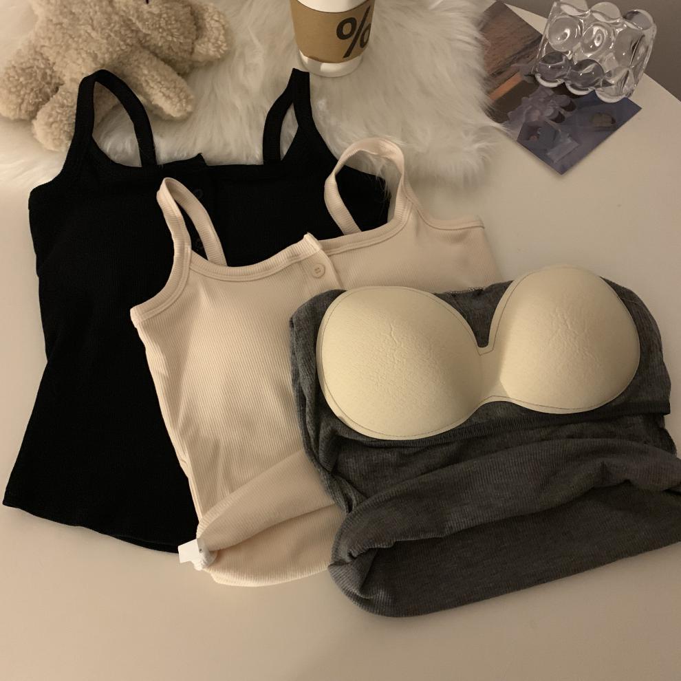 9674 #2023 가을 스파이스 걸스는 가슴 패드와 짧은 탑이있는 민소매 기본 캐미솔 조끼를 착용스토어 가기