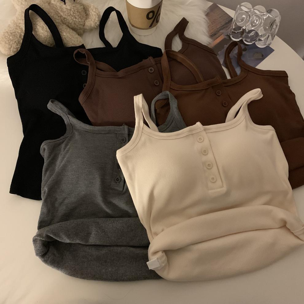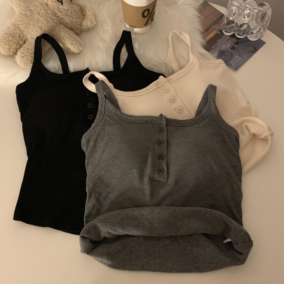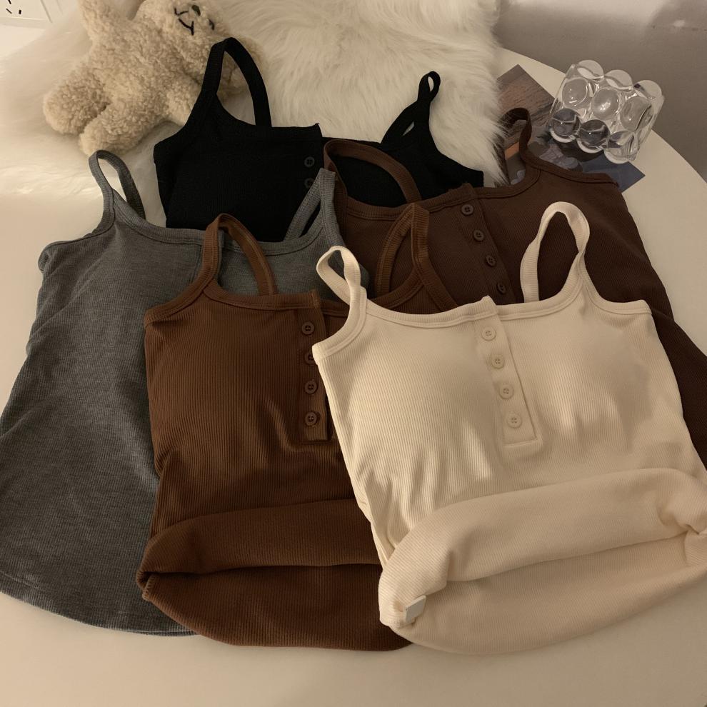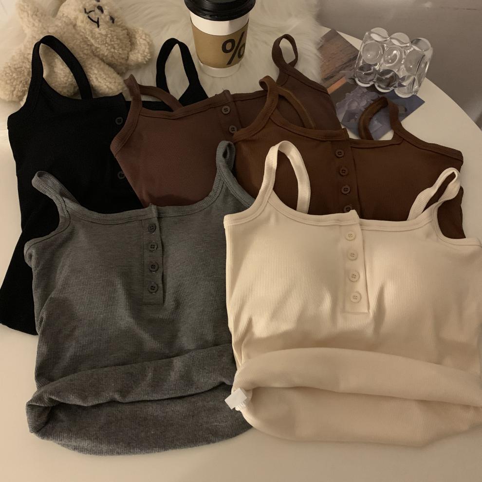 9674 #2023 가을 스파이스 걸스는 가슴 패드와 짧은 탑이있는 민소매 기본 캐미솔 조끼를 착용스토어 가기