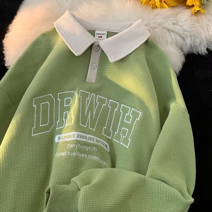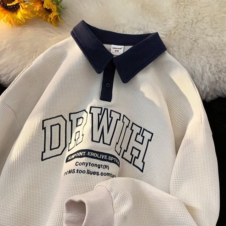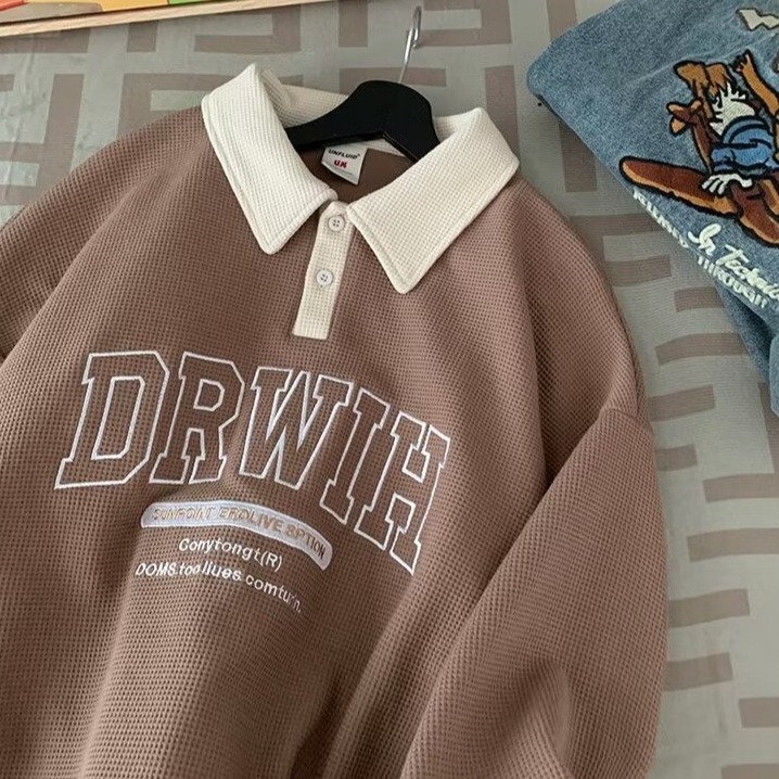 일본 옷깃 폴로 셔츠 남성용 긴팔 네이비 스웨터 여름 얇은 디자인 감각 틈새 오버 사이즈 커플 코트스토어 가기