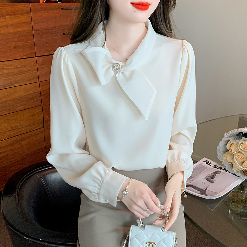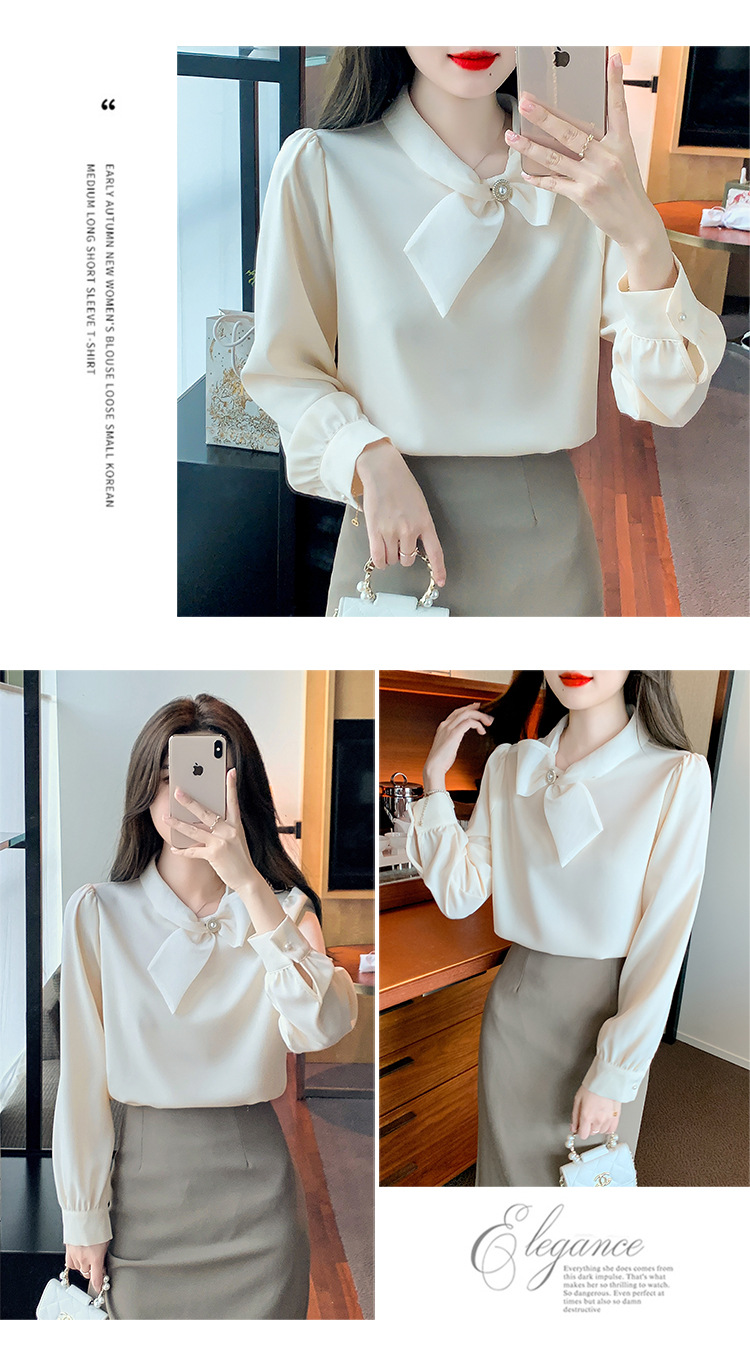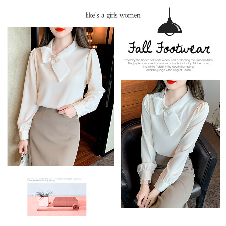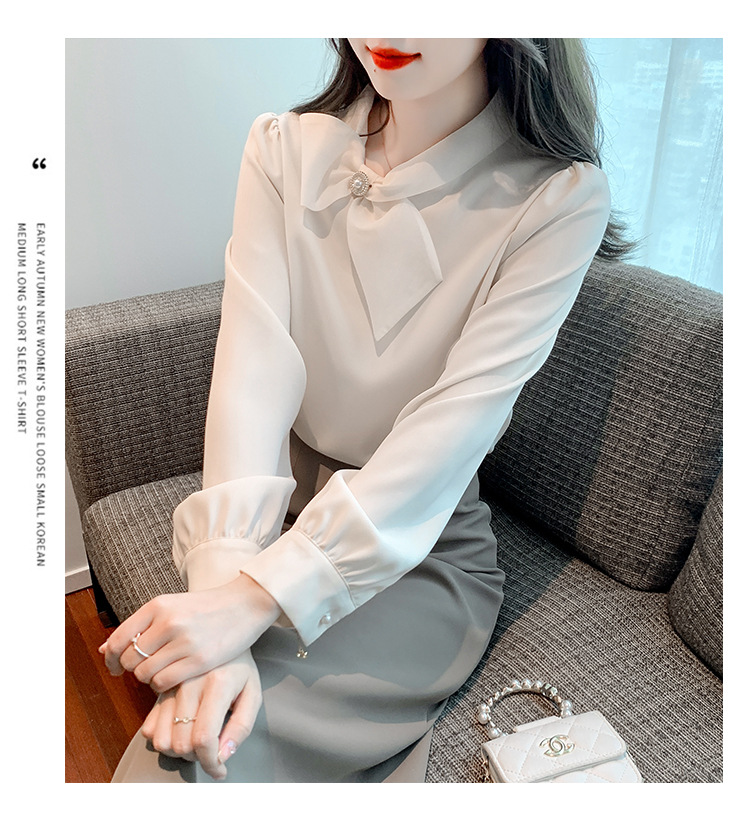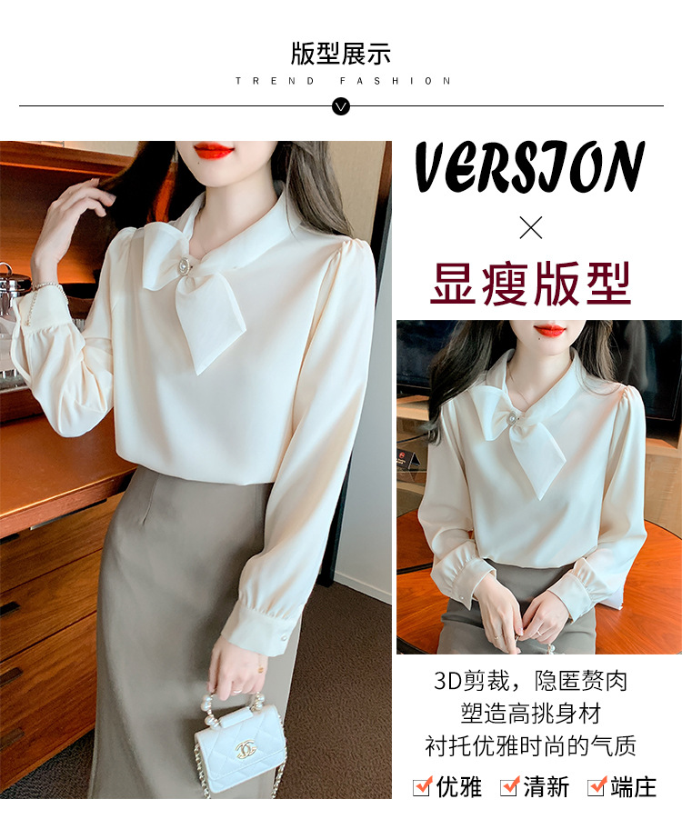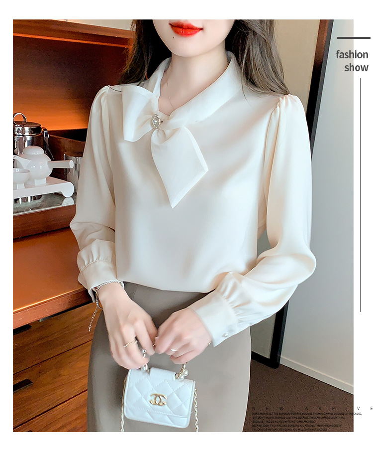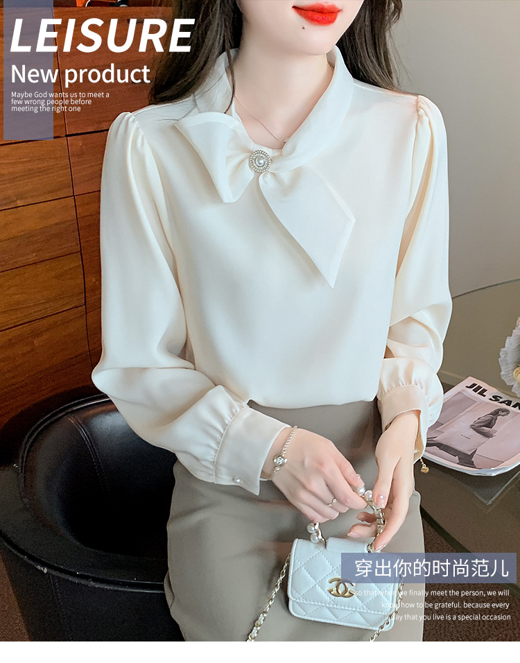 2026 가을 신상 우아한 리본 쉬폰 셔츠 여성용 긴팔 디자인 셔츠 시크한 탑스토어 가기