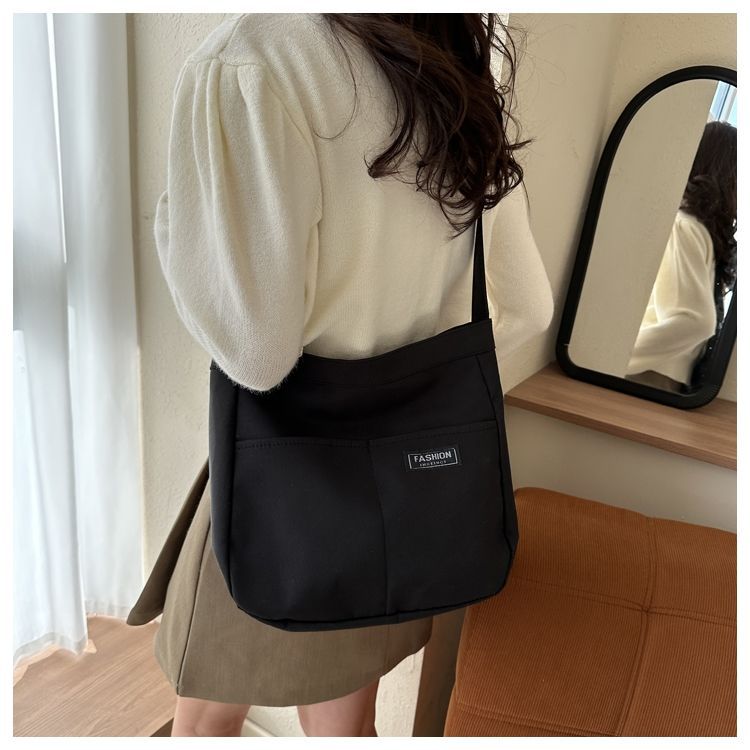 대용량 캔버스 백 여성 가을과 겨울 2023 새로운 유행 토트백 학생 클래스 숄더 크로스바디 백