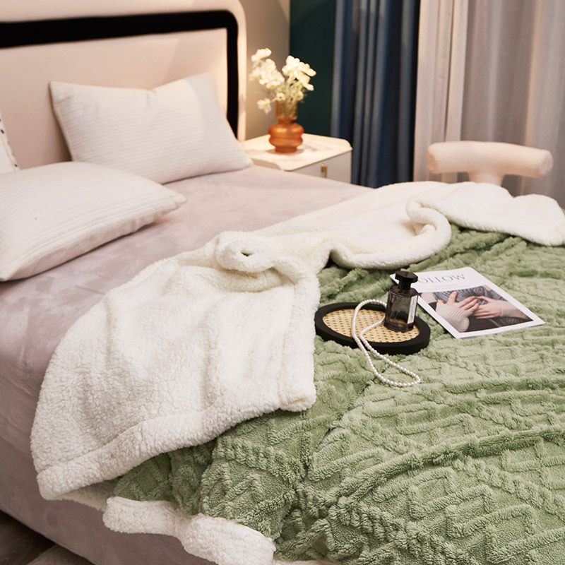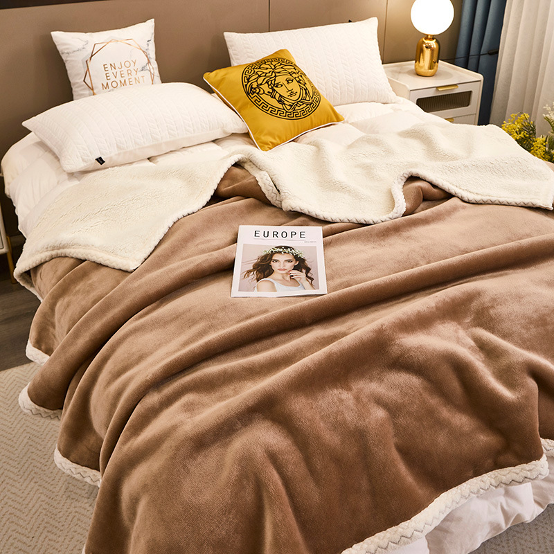 2025 가을 겨울 이중층 두꺼운 양고기 양털 소형 담요, 순수 무지 체커보드 무늬, 사무실 낮잠용 소형 담요, 캐주얼
