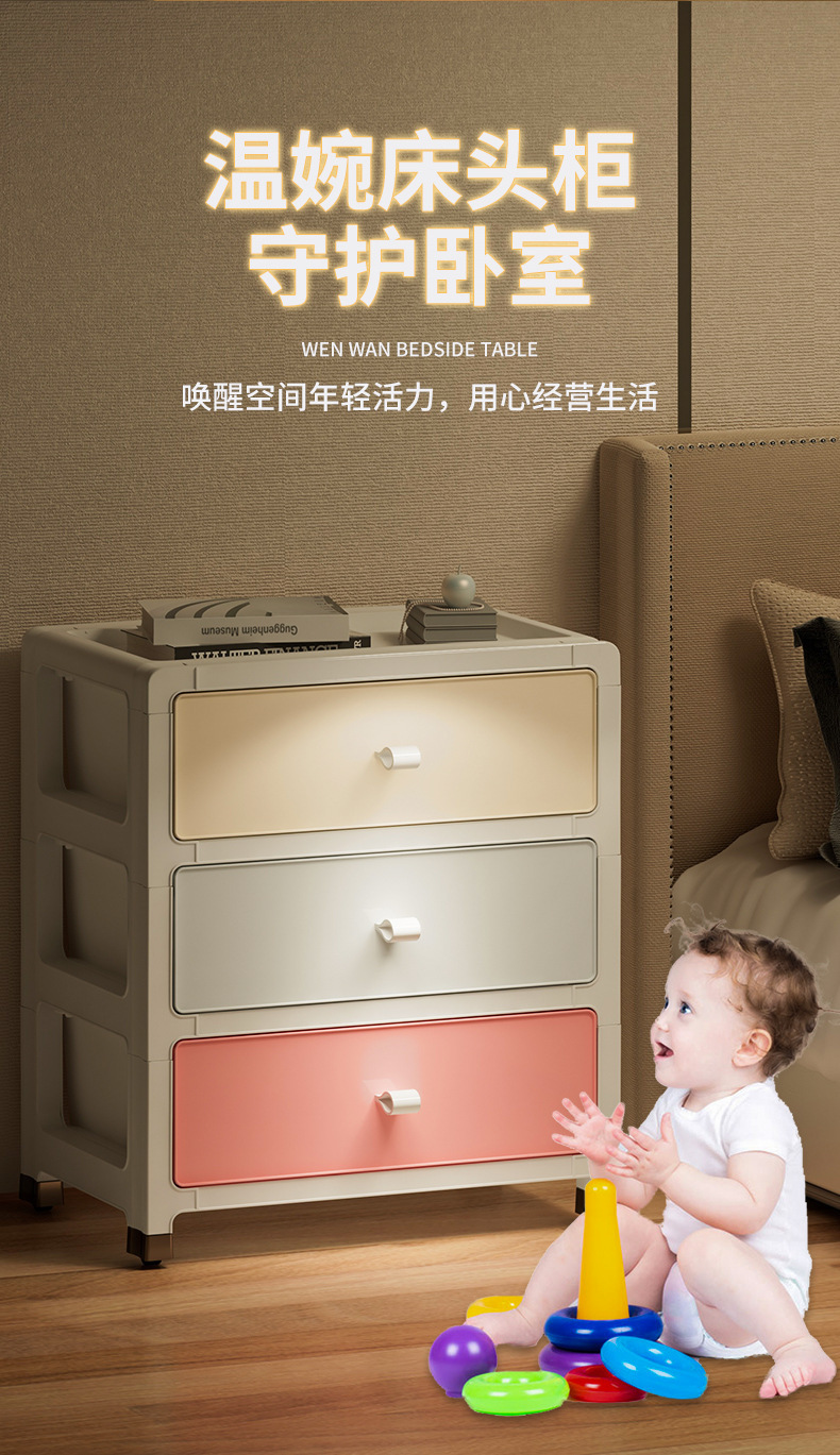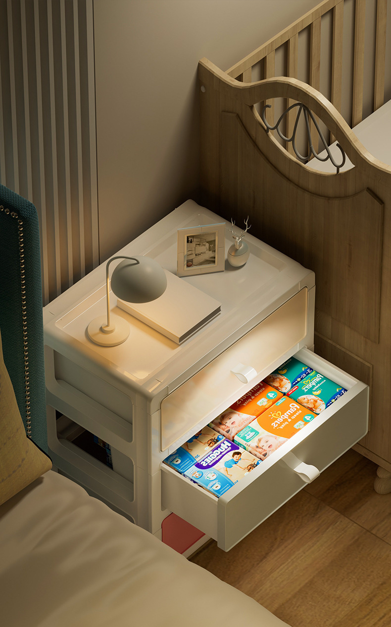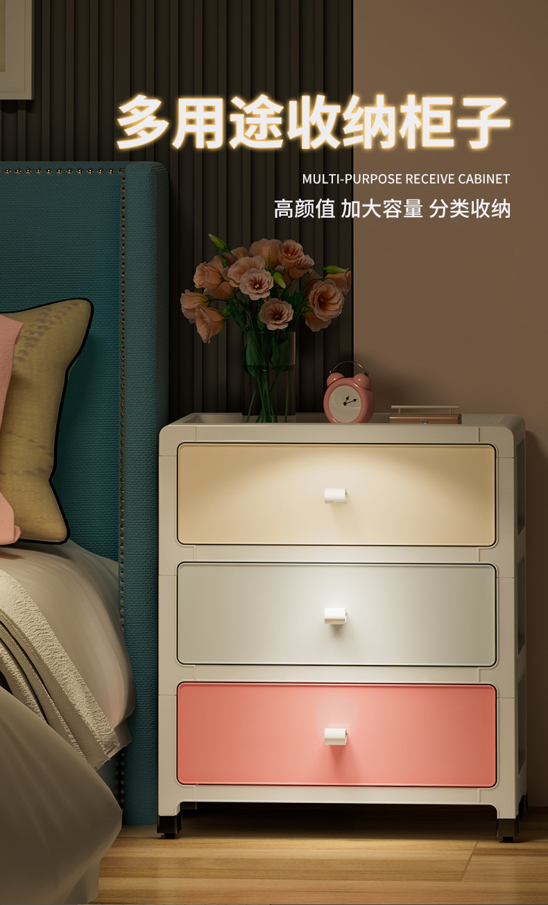 풀리가있는 간단한 스타일의 사무실 홈 침실 침대 옆 탁자 다기능 버클 디자인 수납 서랍 수납 캐비닛