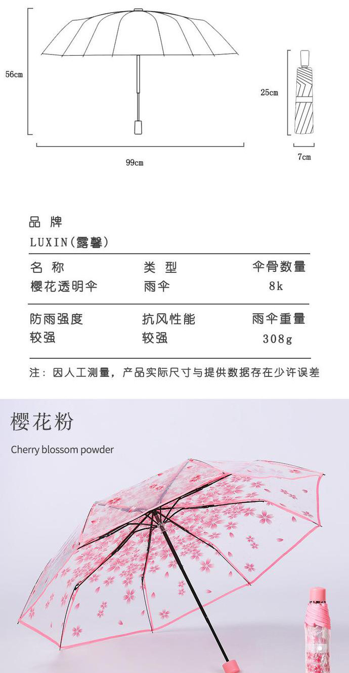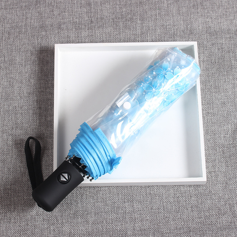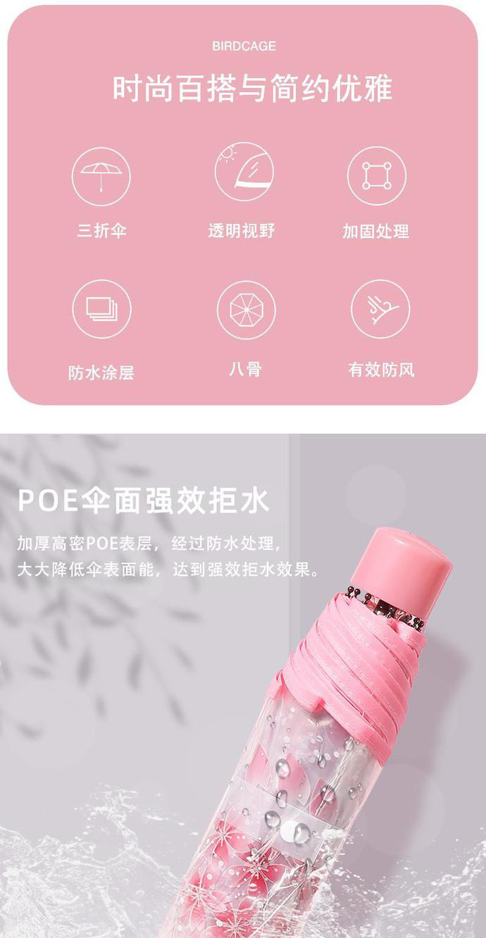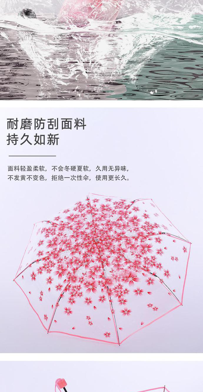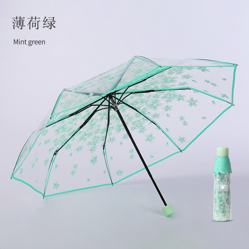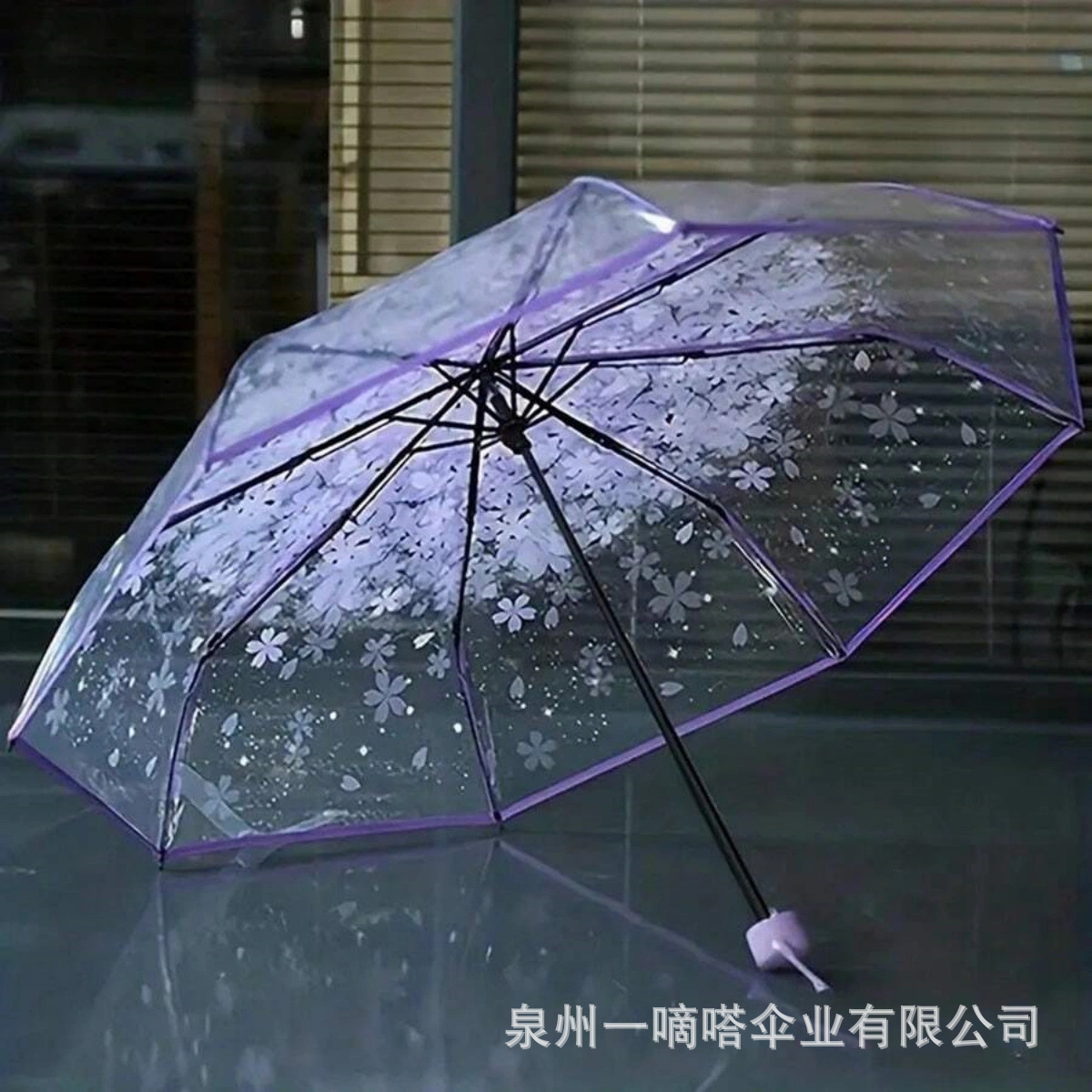 국경 독점 벚꽃 투명 우산 접이식 투명 우산 두꺼운 커플 3 접이식 여신 창조적 인 우산 도매