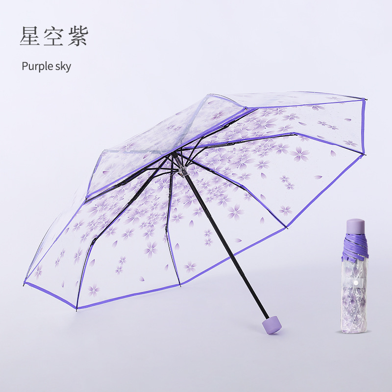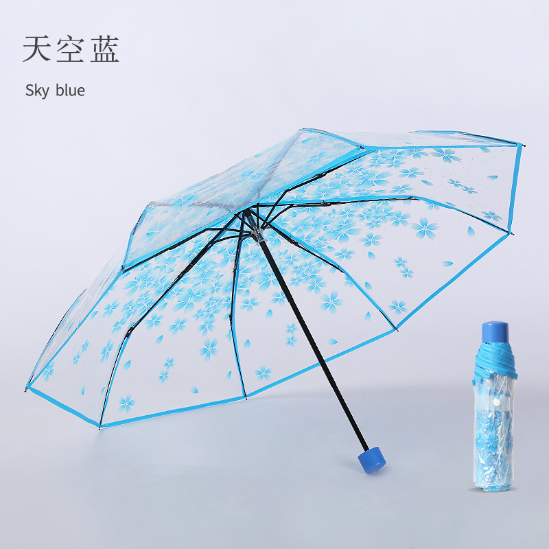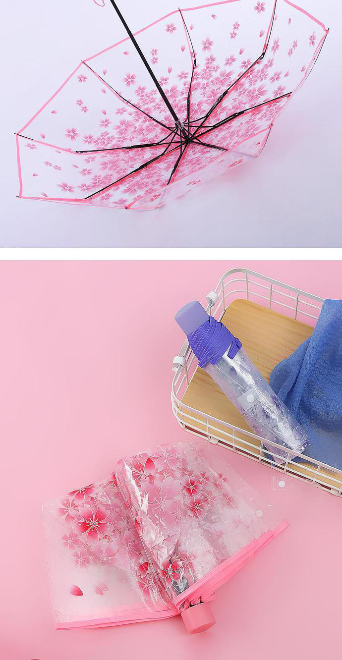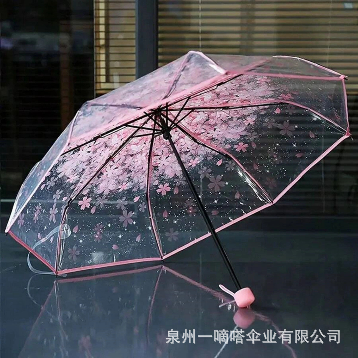 국경 독점 벚꽃 투명 우산 접이식 투명 우산 두꺼운 커플 3 접이식 여신 창조적 인 우산 도매스토어 가기