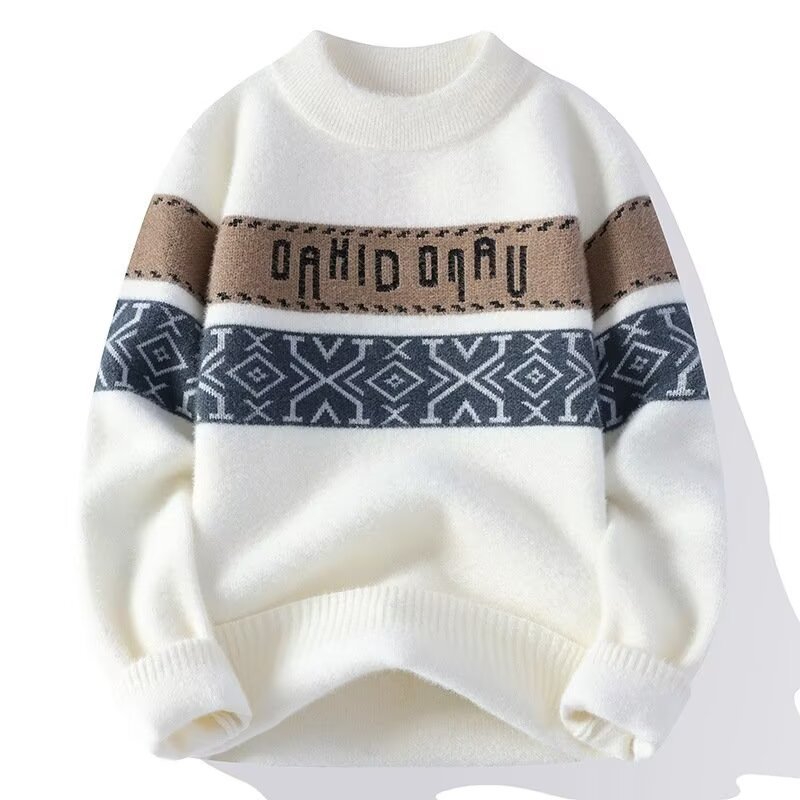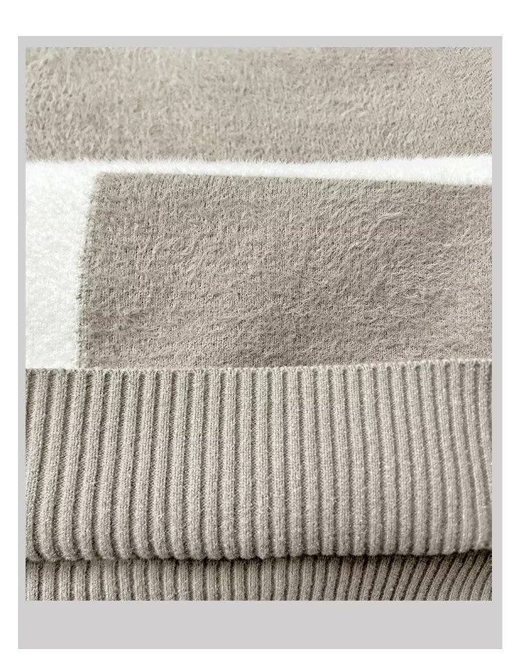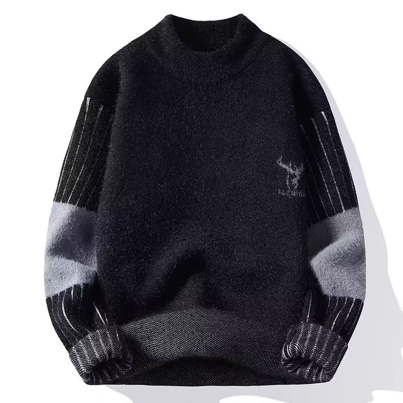 모조 밍크 원피스 캐시미어 컬러 블록 스웨터 중학생을 위한 두꺼운 따뜻한 옷을 기모 남자의 가을과 겨울 새로운 니트 베이스 셔츠