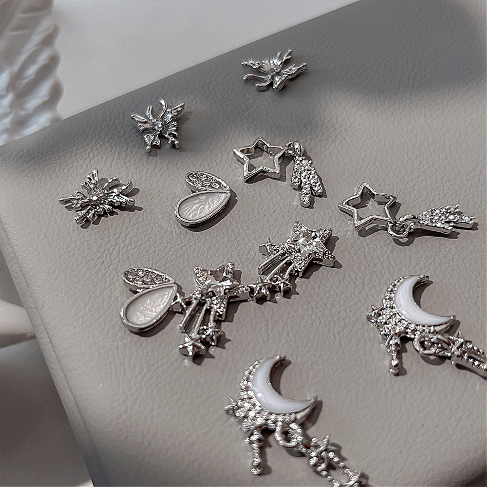 그물 빨간 폭발 별 달 펜던트 합금 네일 보석 빛 고급 상감 모조 다이아몬드 나비 사랑 네일 장식 도매스토어 가기