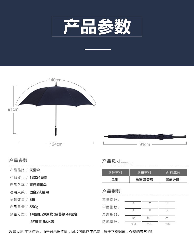 파라다이스 우산 13024E 터치 8 뼈 우산 긴 손잡이 우산 단색 비즈니스 우산 태양 우산 대형 바람 저항 도매