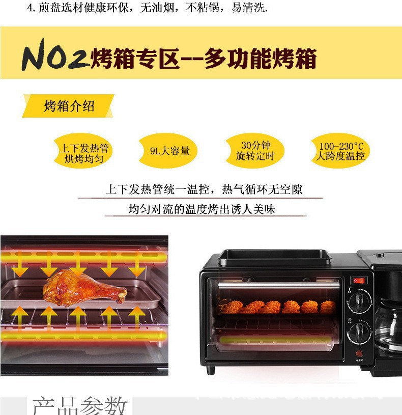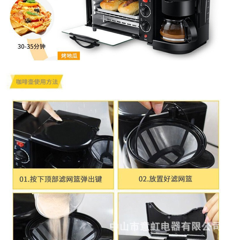 크로스 보더 영어 다기능 아침 식사 기계 가정용 튀김 및 베이킹 쓰리인원 커피 머신 오븐 토스터스토어 가기