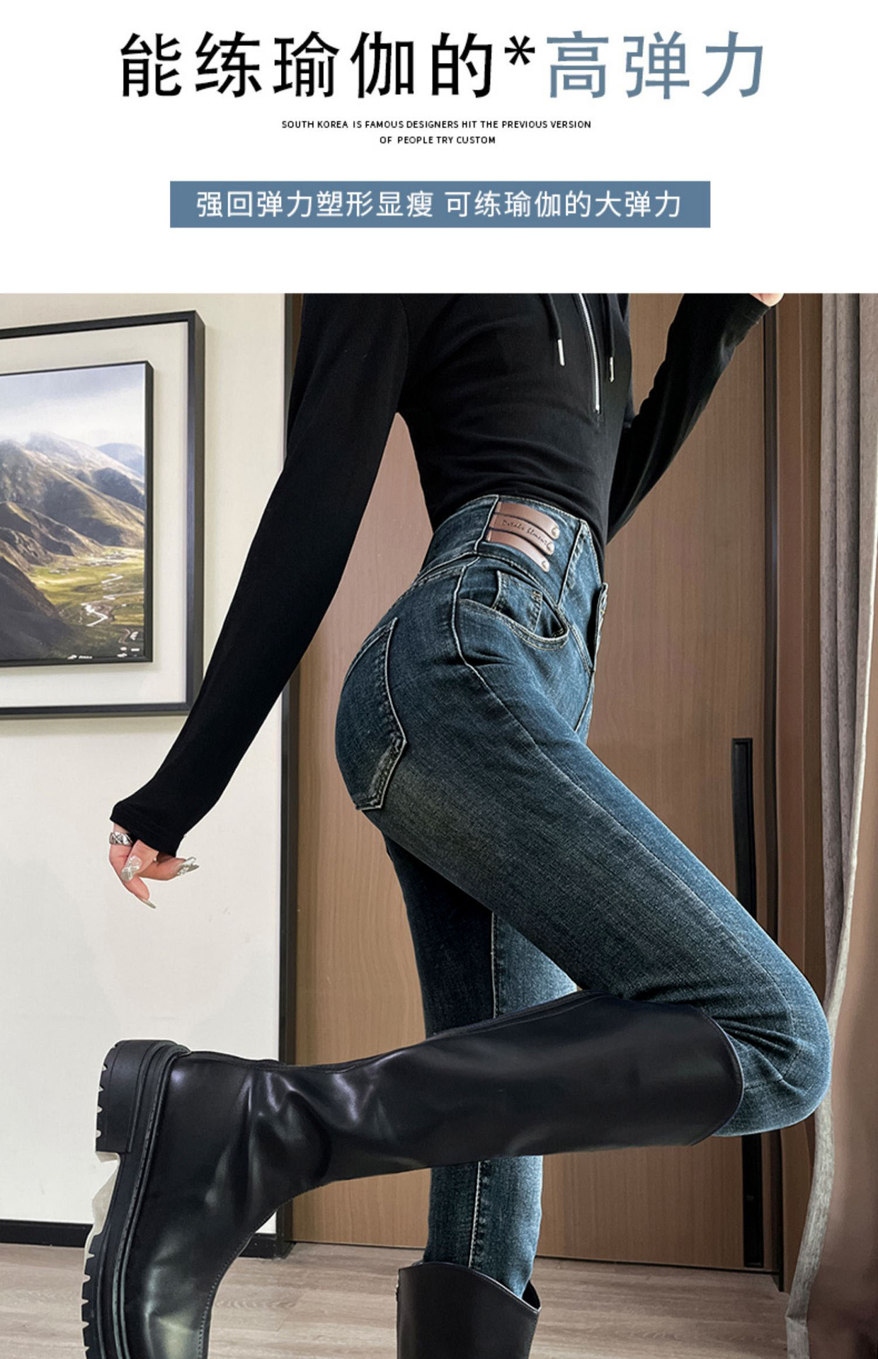 가을과 겨울 새로운 스트레치 타이트 슬림핏 펜슬 팬츠 여성용 2023 슈퍼 하이 웨이스트 데님 슬림핏 펜슬 팬츠 모든 매치