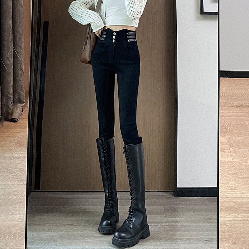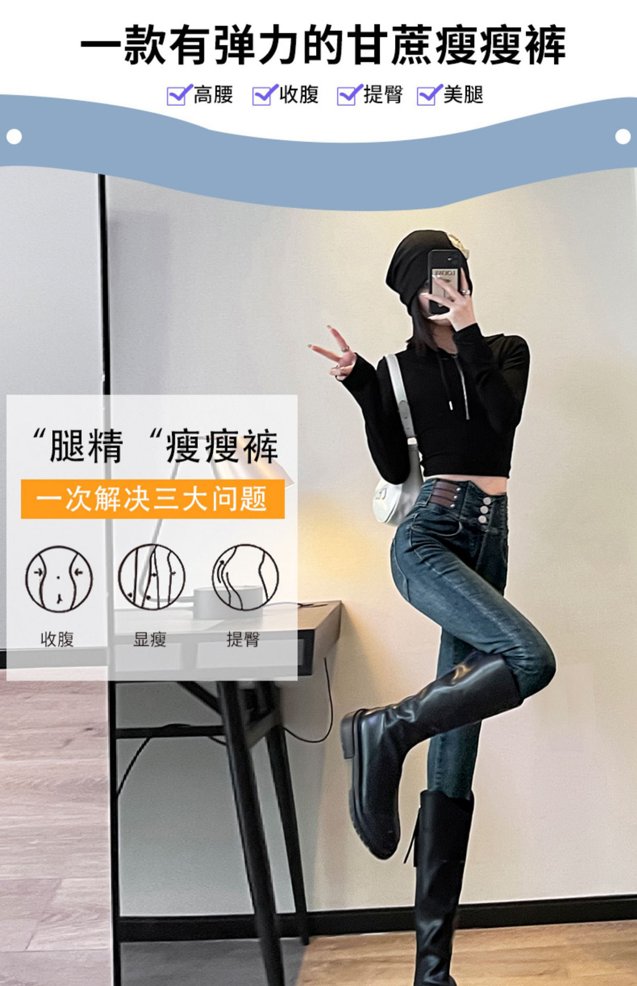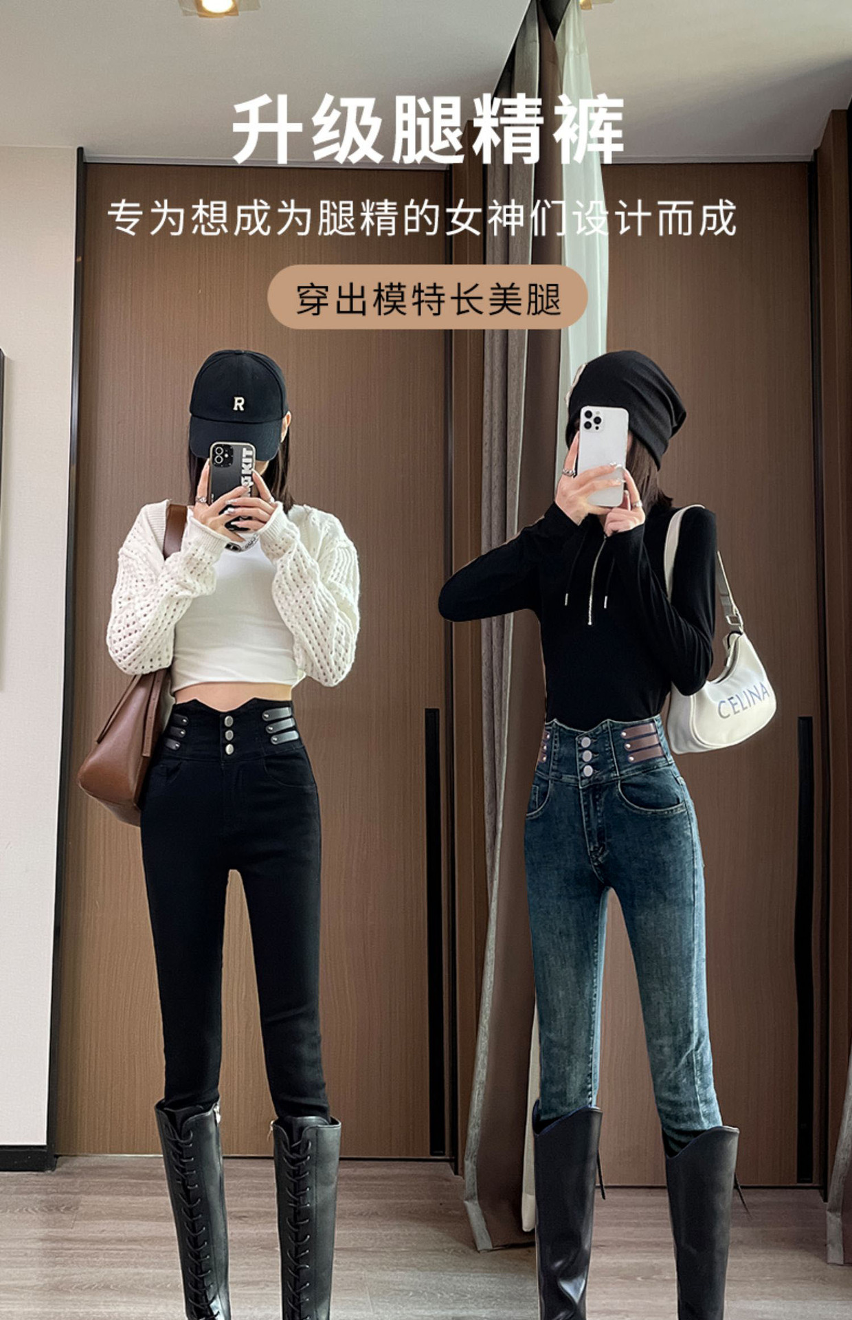가을과 겨울 새로운 스트레치 타이트 슬림핏 펜슬 팬츠 여성용 2023 슈퍼 하이 웨이스트 데님 슬림핏 펜슬 팬츠 모든 매치스토어 가기
