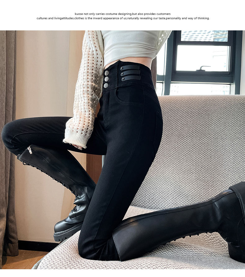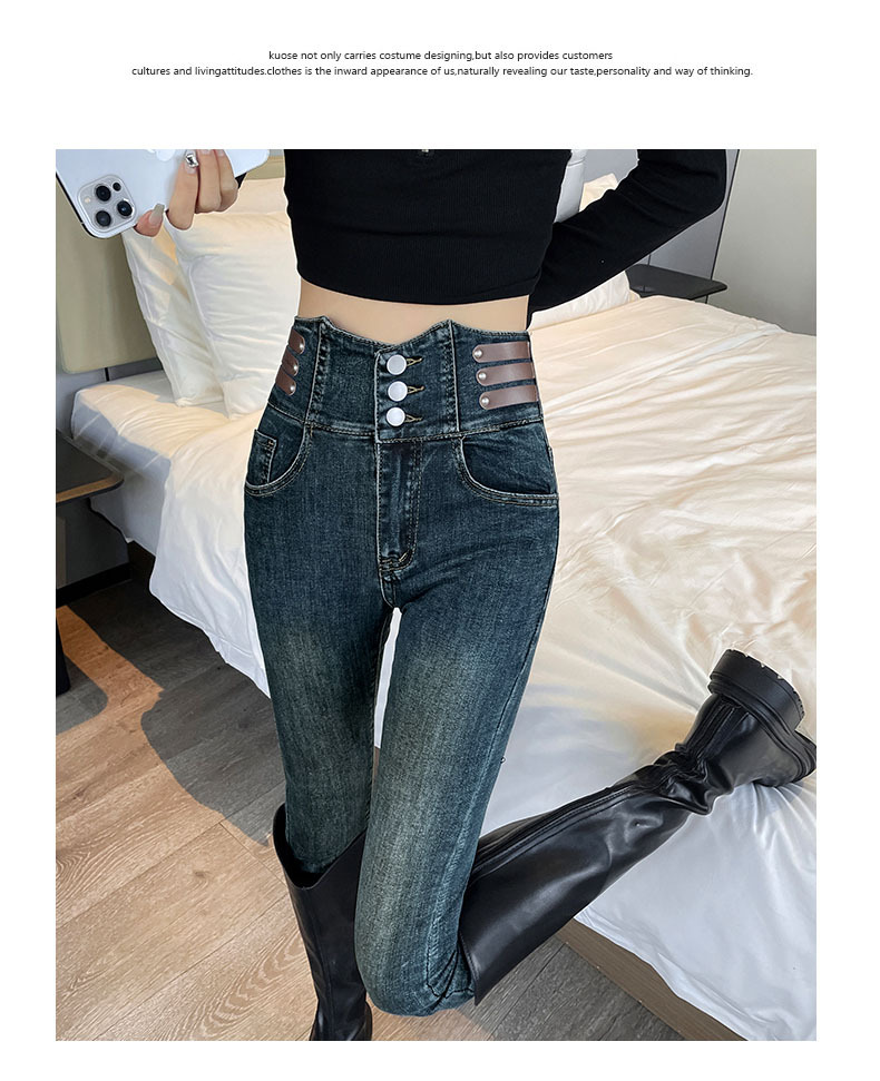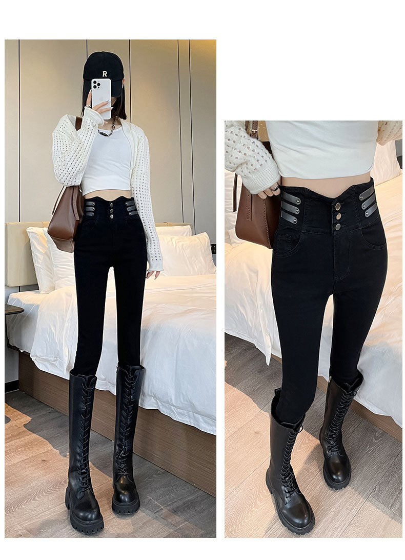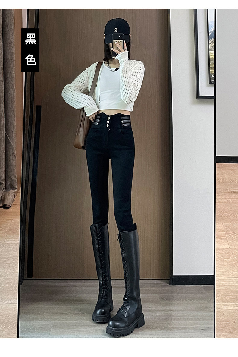 가을과 겨울 새로운 스트레치 타이트 슬림핏 펜슬 팬츠 여성용 2023 슈퍼 하이 웨이스트 데님 슬림핏 펜슬 팬츠 모든 매치스토어 가기