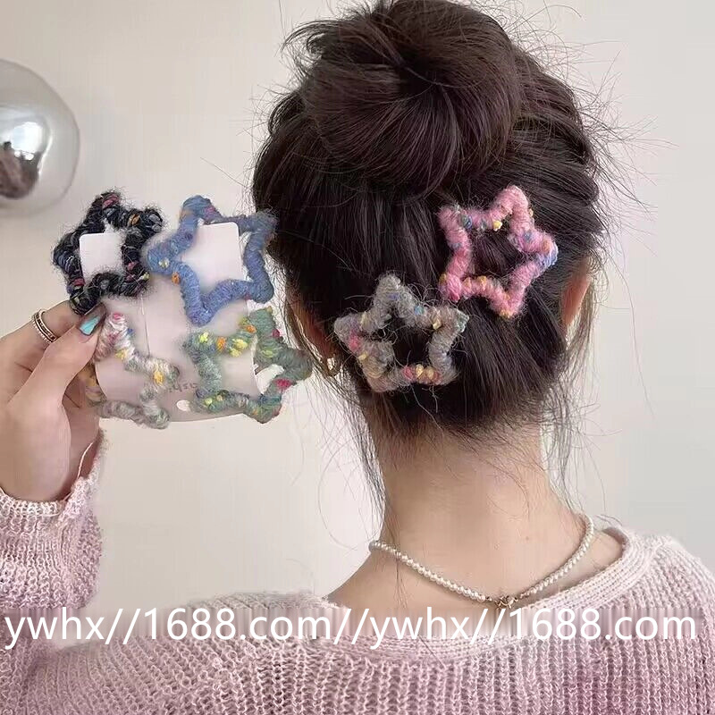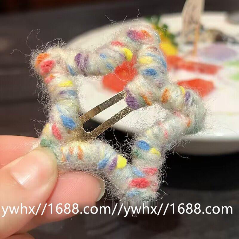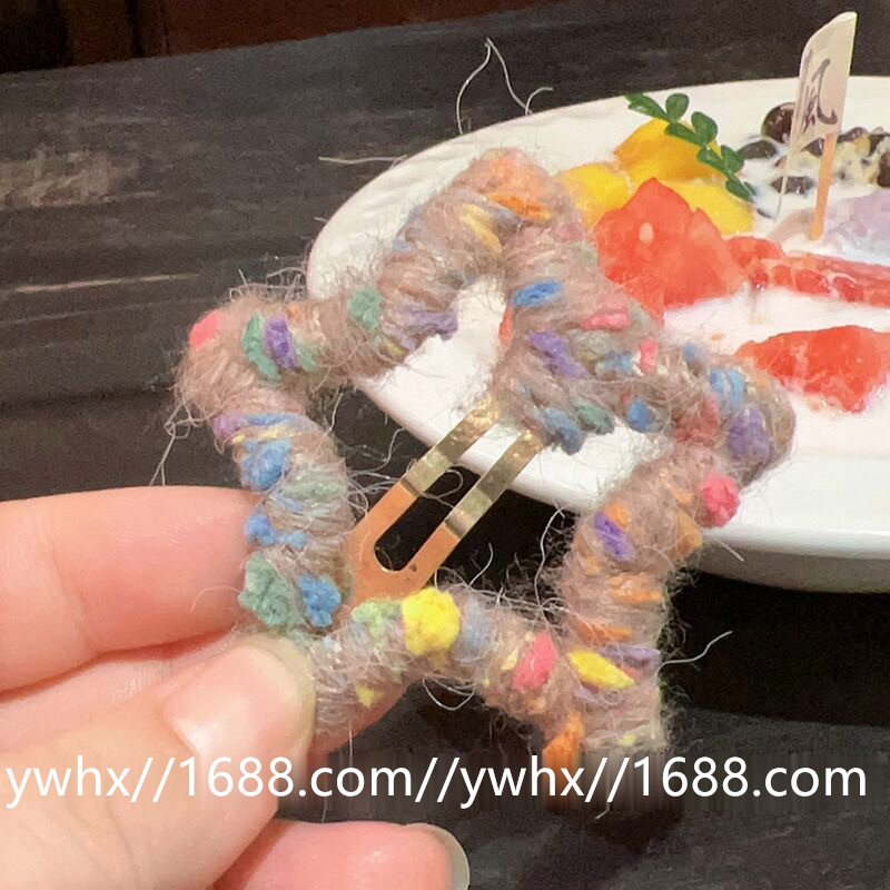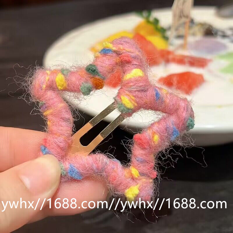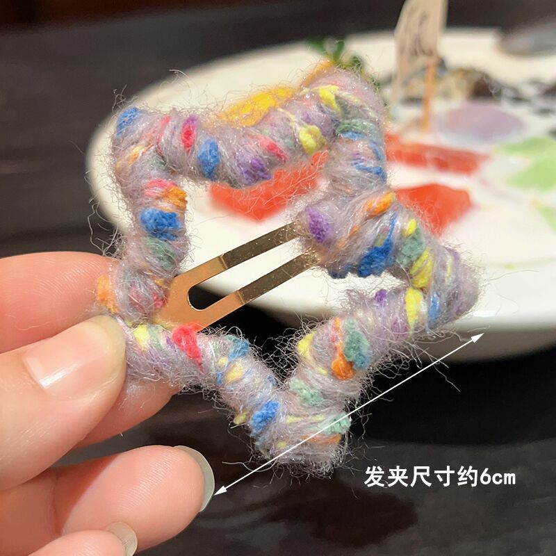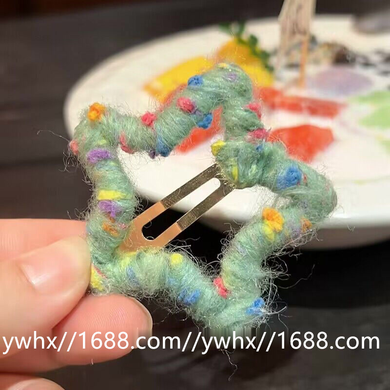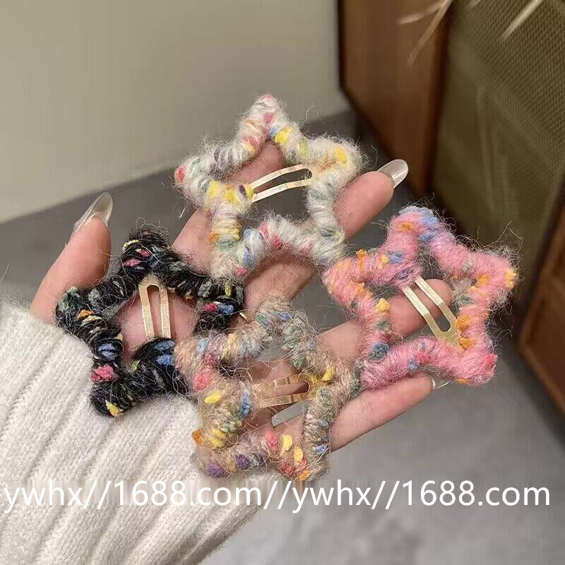 귀여운 별 손으로 감은 다채로운 도트 양털 머리핀, 패셔너블하고 달콤한 BB 클립, 가을 겨울 헤어 액세서리스토어 가기