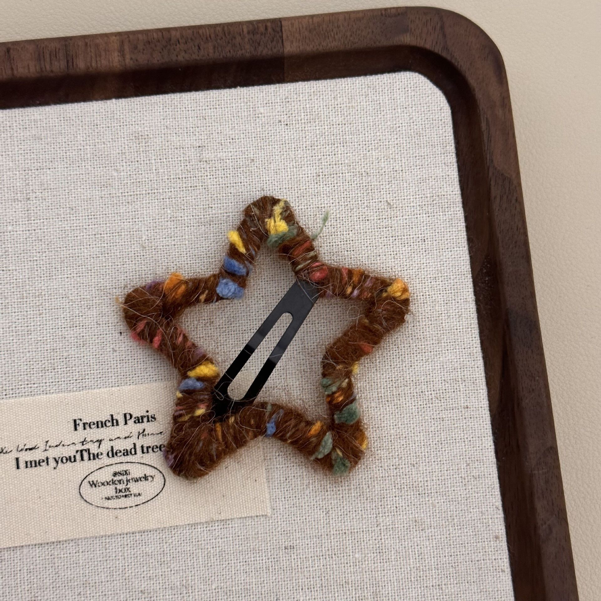 귀여운 별 손으로 감은 다채로운 도트 양털 머리핀, 패셔너블하고 달콤한 BB 클립, 가을 겨울 헤어 액세서리
