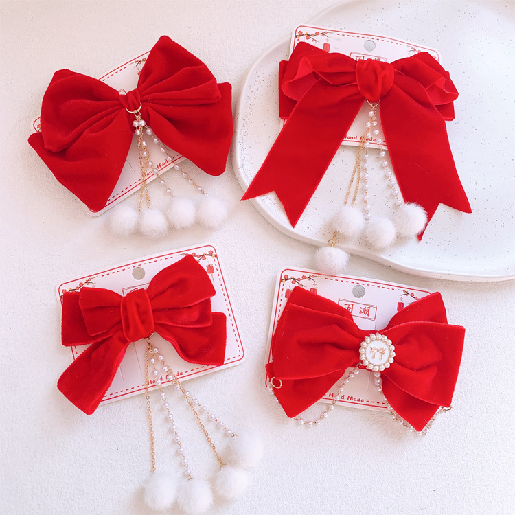 어린이용 빨간 벨벳 리본 머리핀 귀여운 아기 입체 왕관 머리핀 소녀 공주 머리 장식