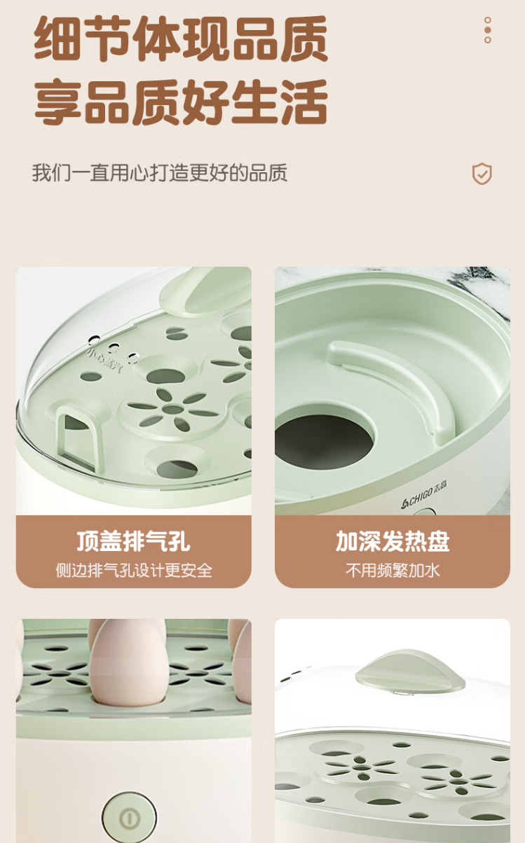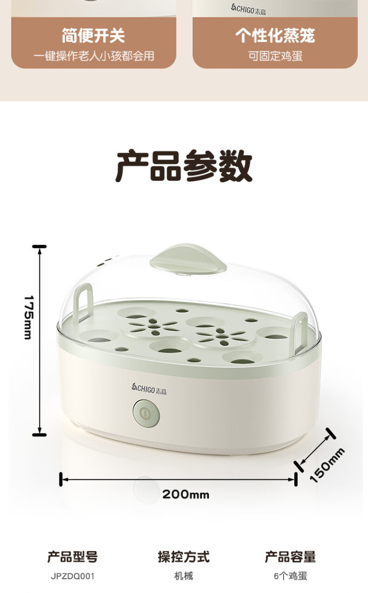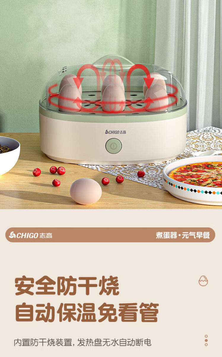 치고 소형 계란 보일러 계란 찜기 가정용 전기 찜기 다기능 아침 식사 계란 보일러 건조 방지 끓는 계란 유물스토어 가기