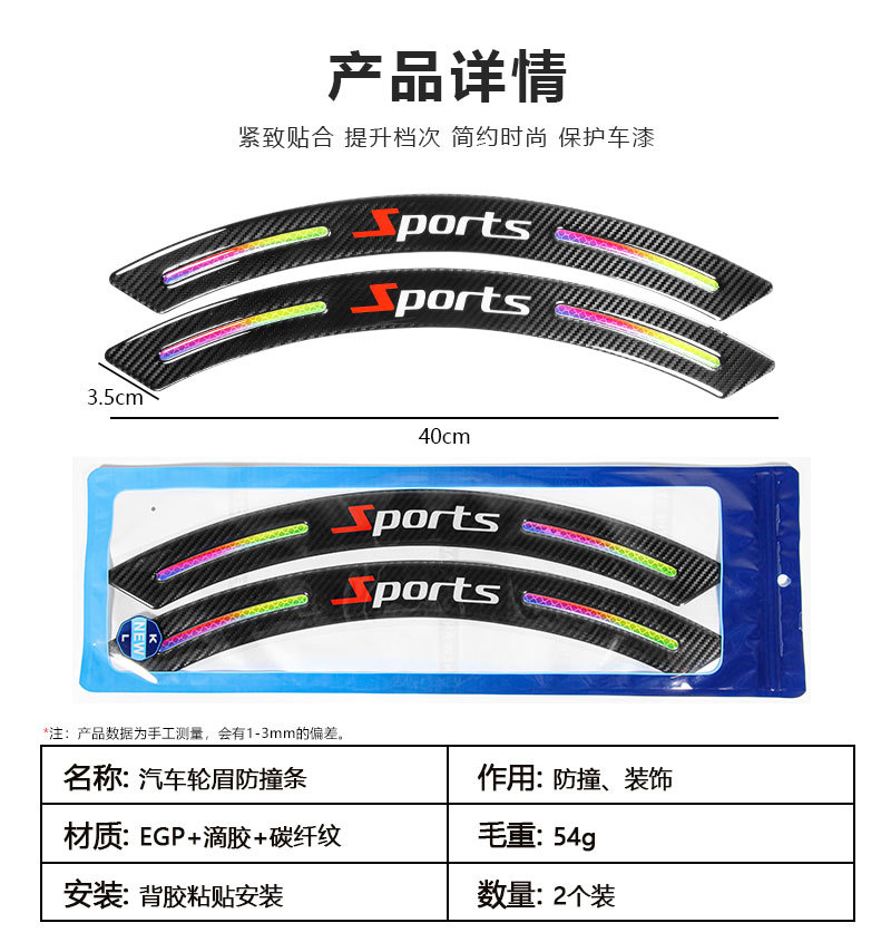 크로스보더 전용 에폭시 카본 스타일 자동차 휠 아치 보호 스티커, 멋진 컬러풀 장식 자동차 스티커, 긁힘 방지 보호 스티커스토어 가기