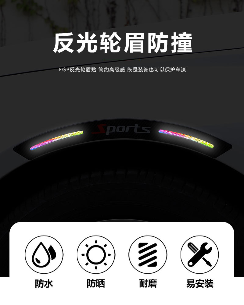 크로스보더 전용 에폭시 카본 스타일 자동차 휠 아치 보호 스티커, 멋진 컬러풀 장식 자동차 스티커, 긁힘 방지 보호 스티커