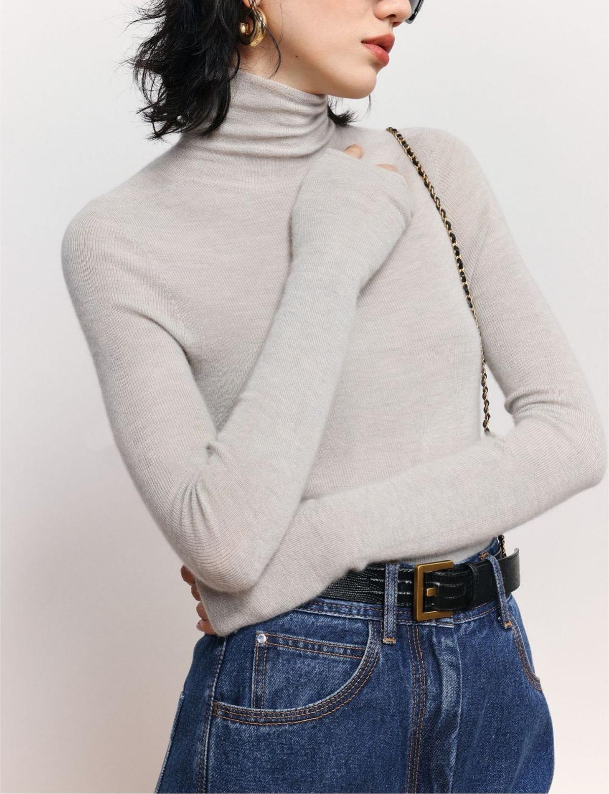 고급 소프트 왁스 하이 넥 니트 베이스 셔츠 여성용 가을과 겨울 슬림핏 타이트 스웨터 여성용 내부 어깨 긴팔 탑