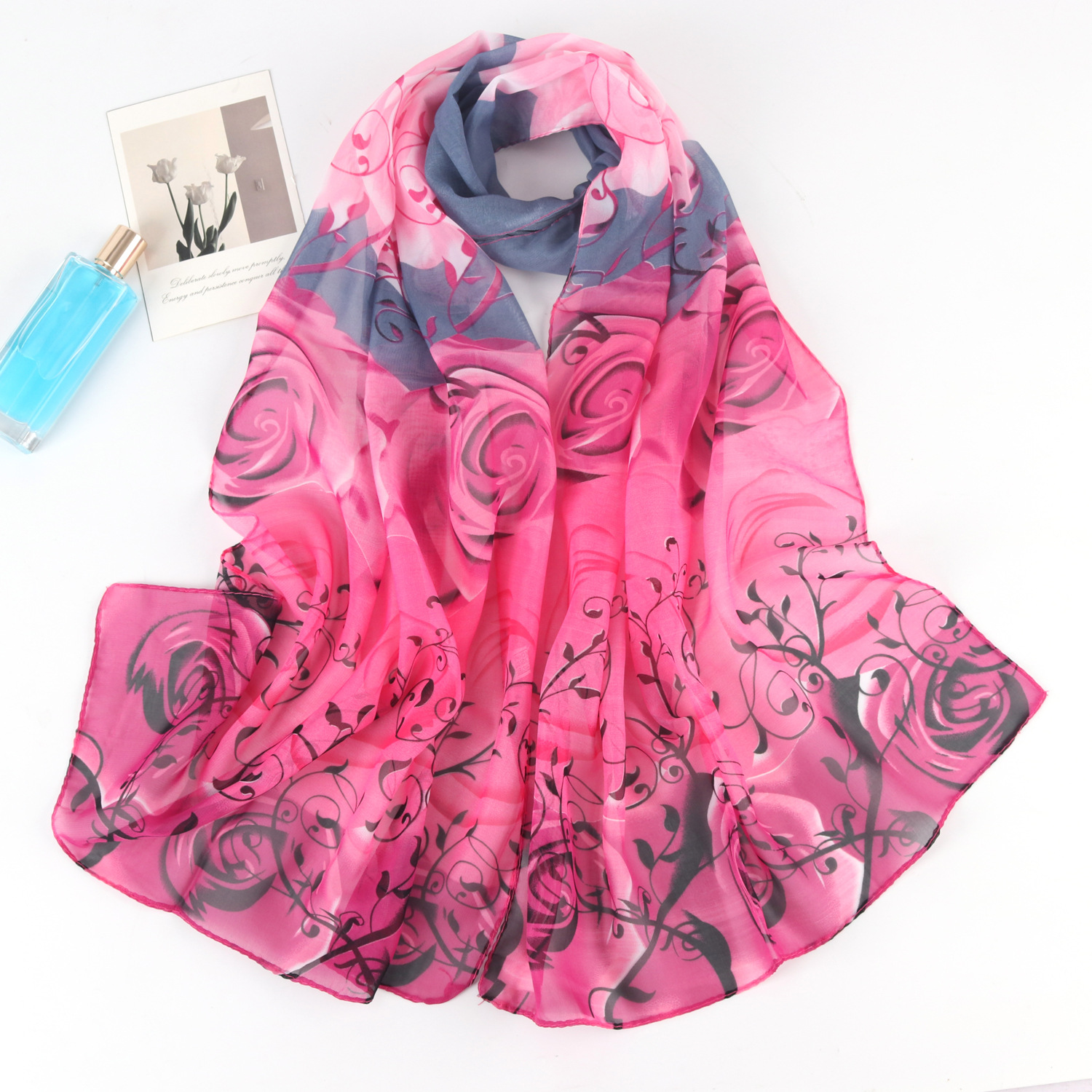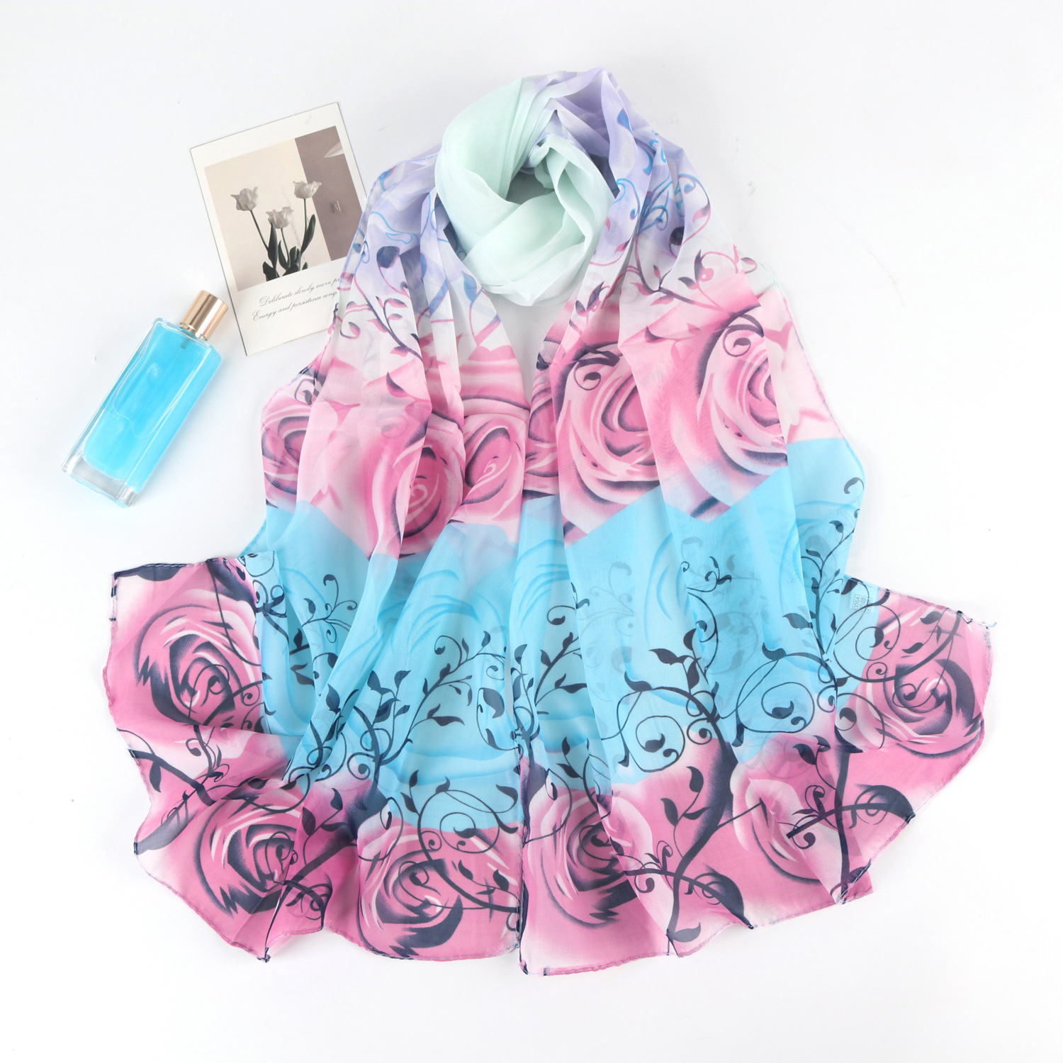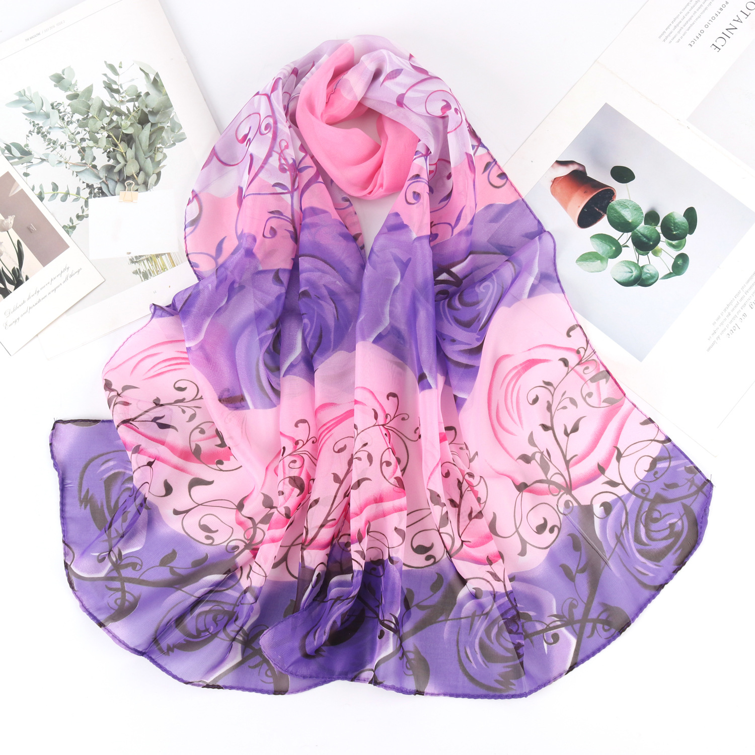 2023 새로운 봄과 여름 쉬폰 프린트 실크 스카프 여성 패션 서양식 해변 여행 숄 자외선 차단제 비치 타올스토어 가기