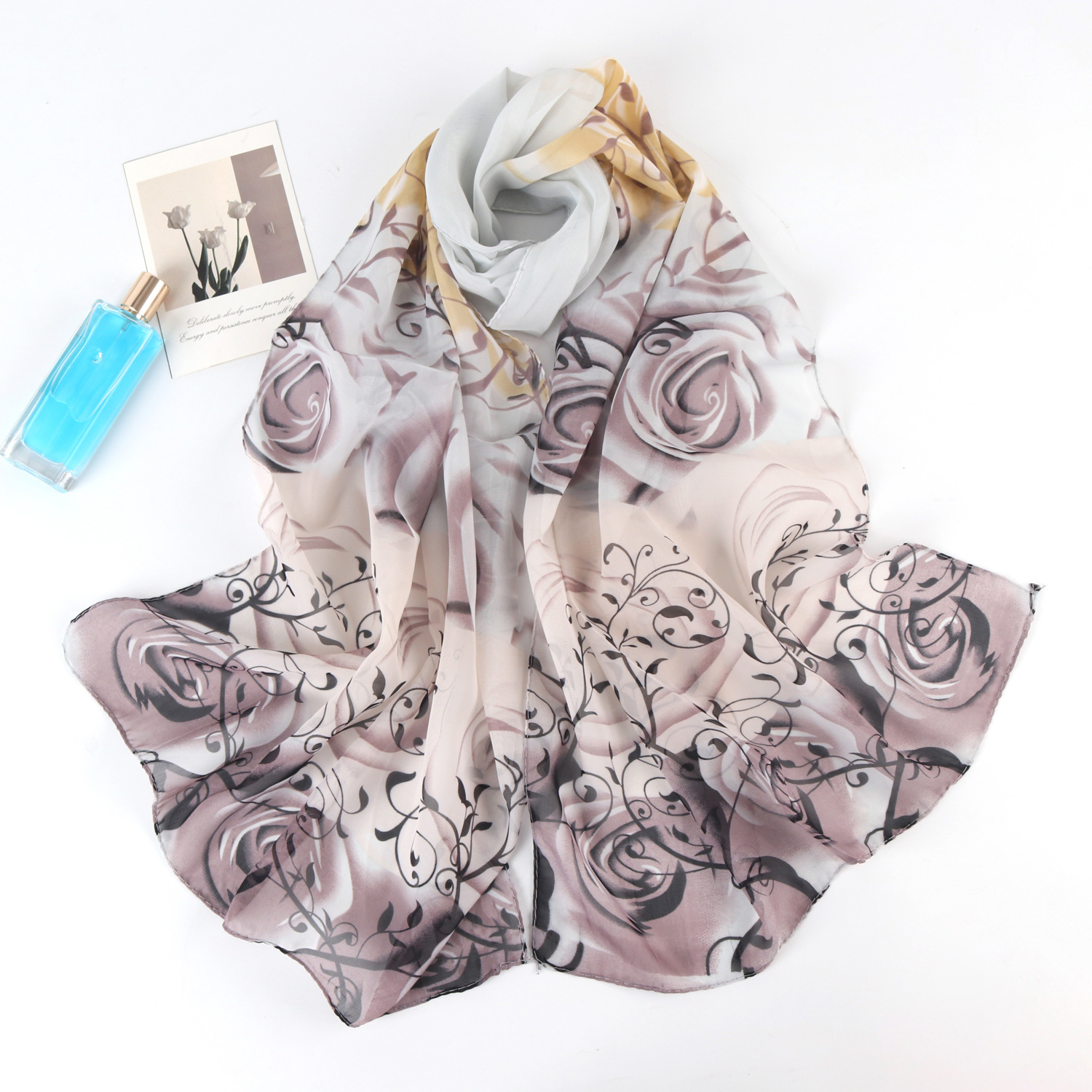 2023 새로운 봄과 여름 쉬폰 프린트 실크 스카프 여성 패션 서양식 해변 여행 숄 자외선 차단제 비치 타올