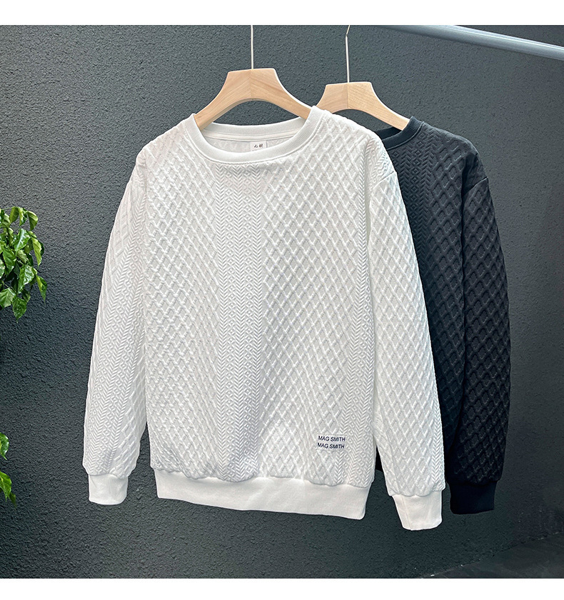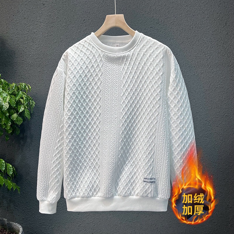 화이트 스웨터 남성용 라운드 넥 2023 새로운 봄 가을과 겨울 탑 인 트렌디 브랜드 두꺼운 캐주얼 베이스 셔츠