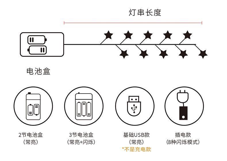 • 배터리 상자: 1.5 미터 10 등 [항상 켜짐]