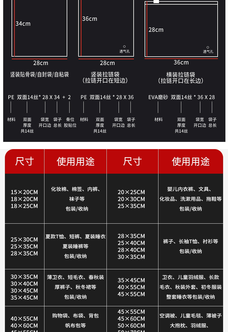 • 색상: PE12 실크 양면 투명/50/통풍구; 크기: 15*25
