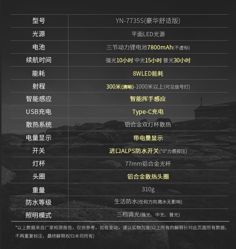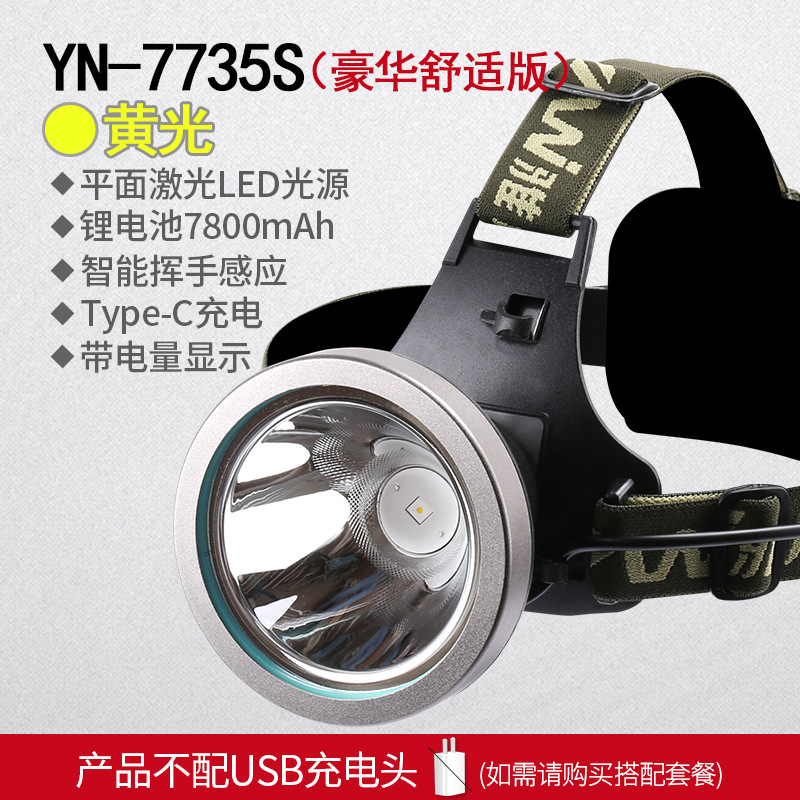 야니 7735s 헤드라이트 강한 빛 충전식 슈퍼 브라이트 헤드 마운트 손전등 야외 고출력 LED 조명 광부 램프